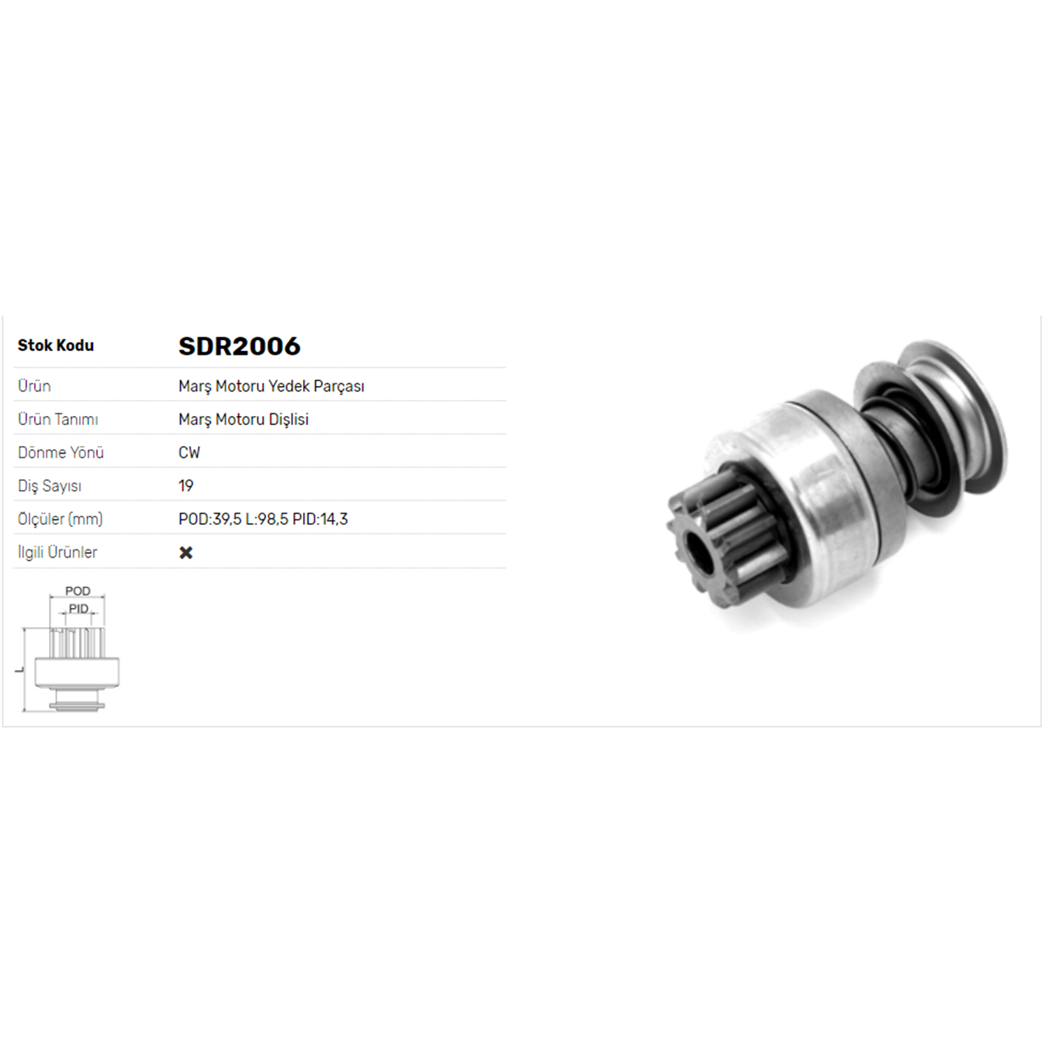 BOY 98,50 MM / KAFA ÇAPI 39,50 MM / İÇ ÇAPI 14,30 MM / KANAL 3 / 10 DİŞ / HELIS FREZE