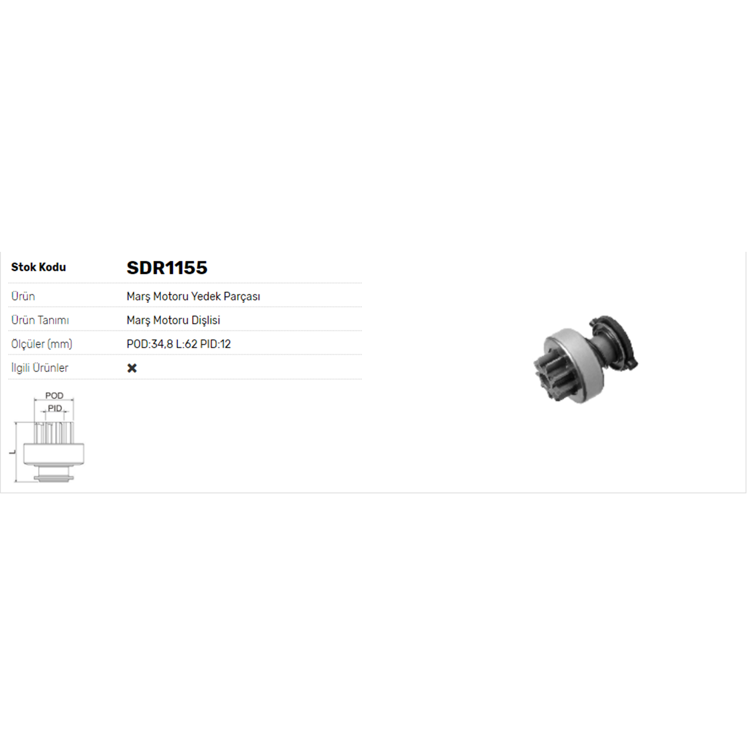 BOY 64 MM / KAFA ÇAPI 34,20 MM / İÇ ÇAPI 12 MM / KANAL 16 / 9 DİŞ
