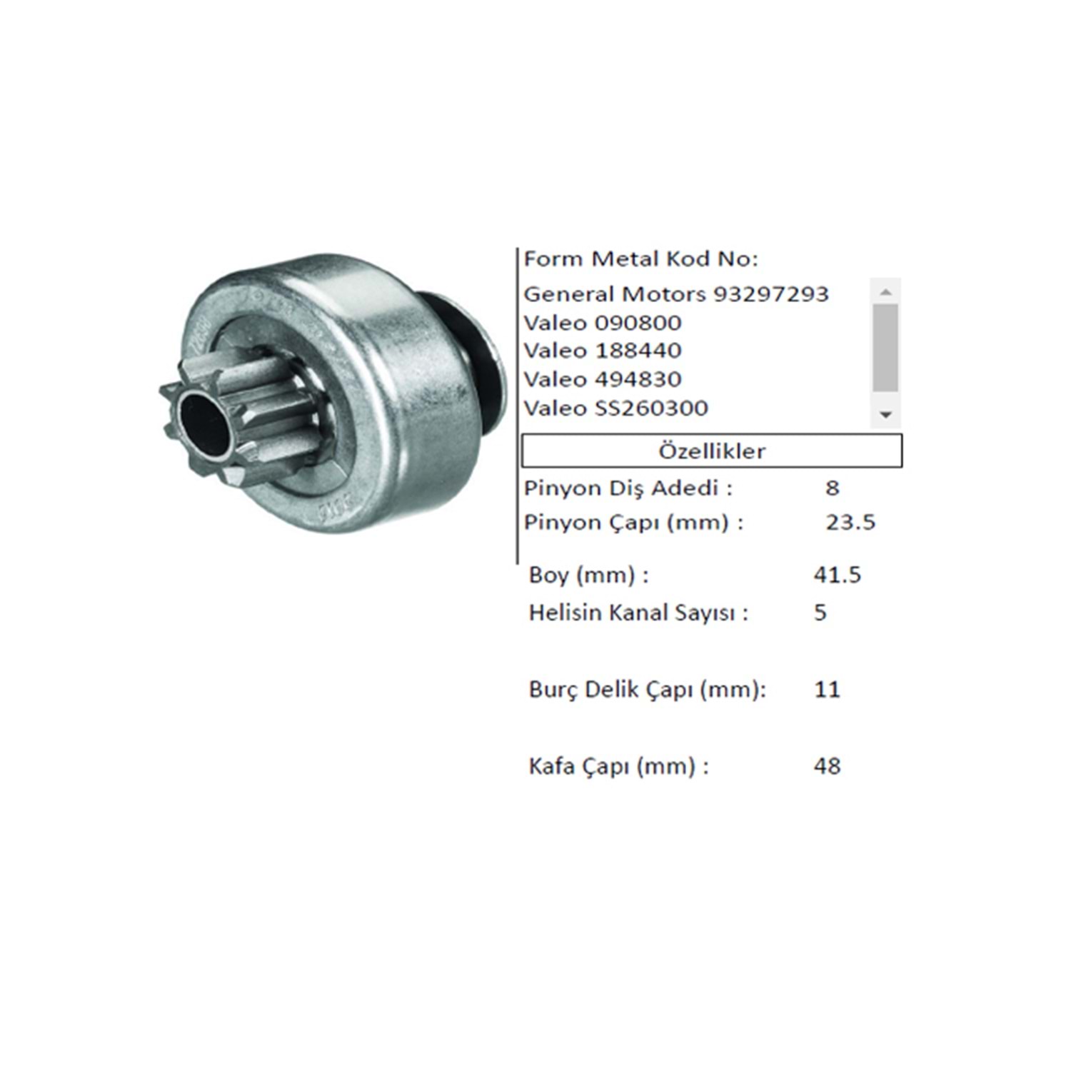 MARŞ DİŞLİSİ 8 DİŞ RENAULT CLIO MEGANE LAGUNA 1.4 1.5 1.6 SCENIC 2.0 16V 2003 5 KANAL