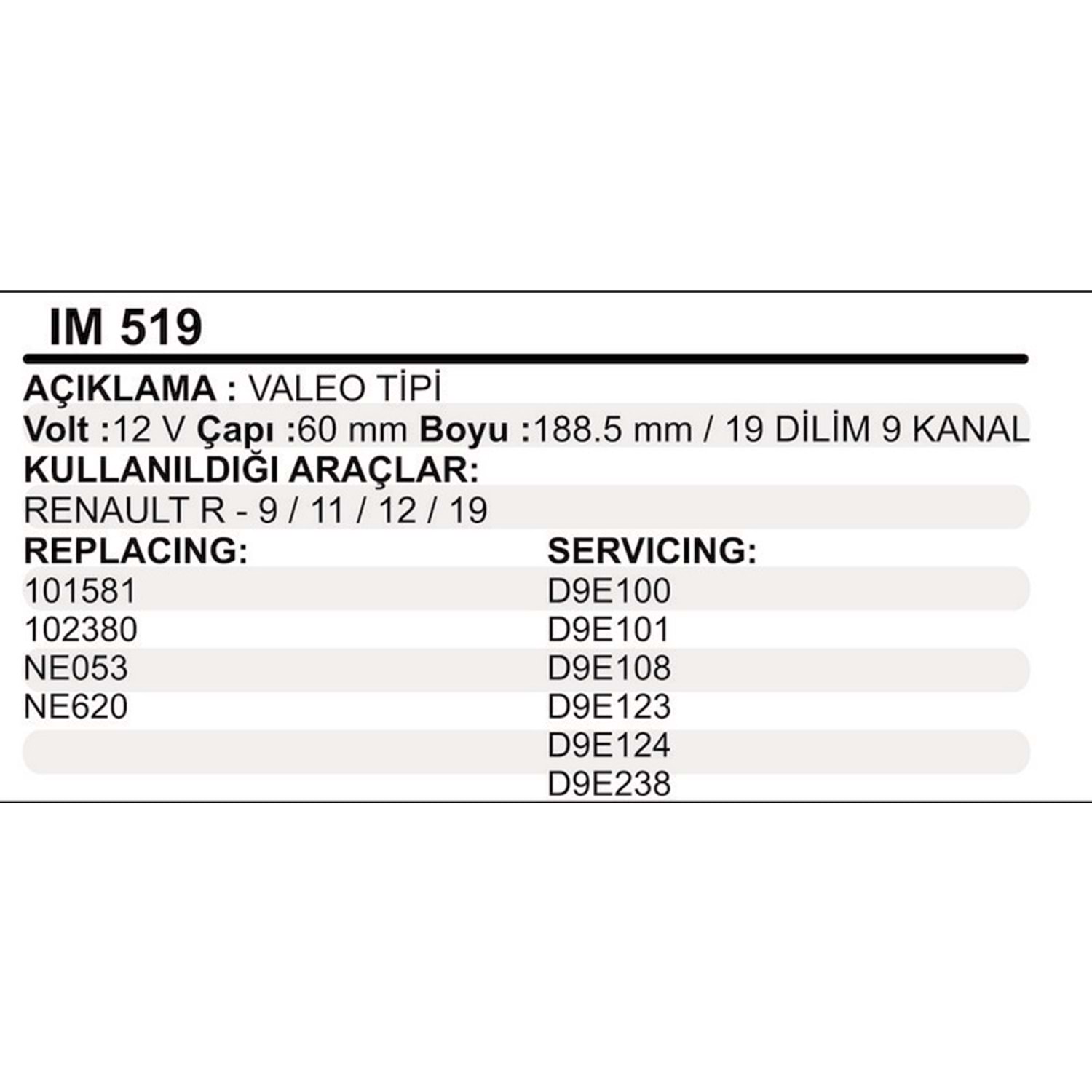 MARS KOLLEKTOR 12V 9 KANAL VALEO TIPI RENAULT R9 R11 R12 R19