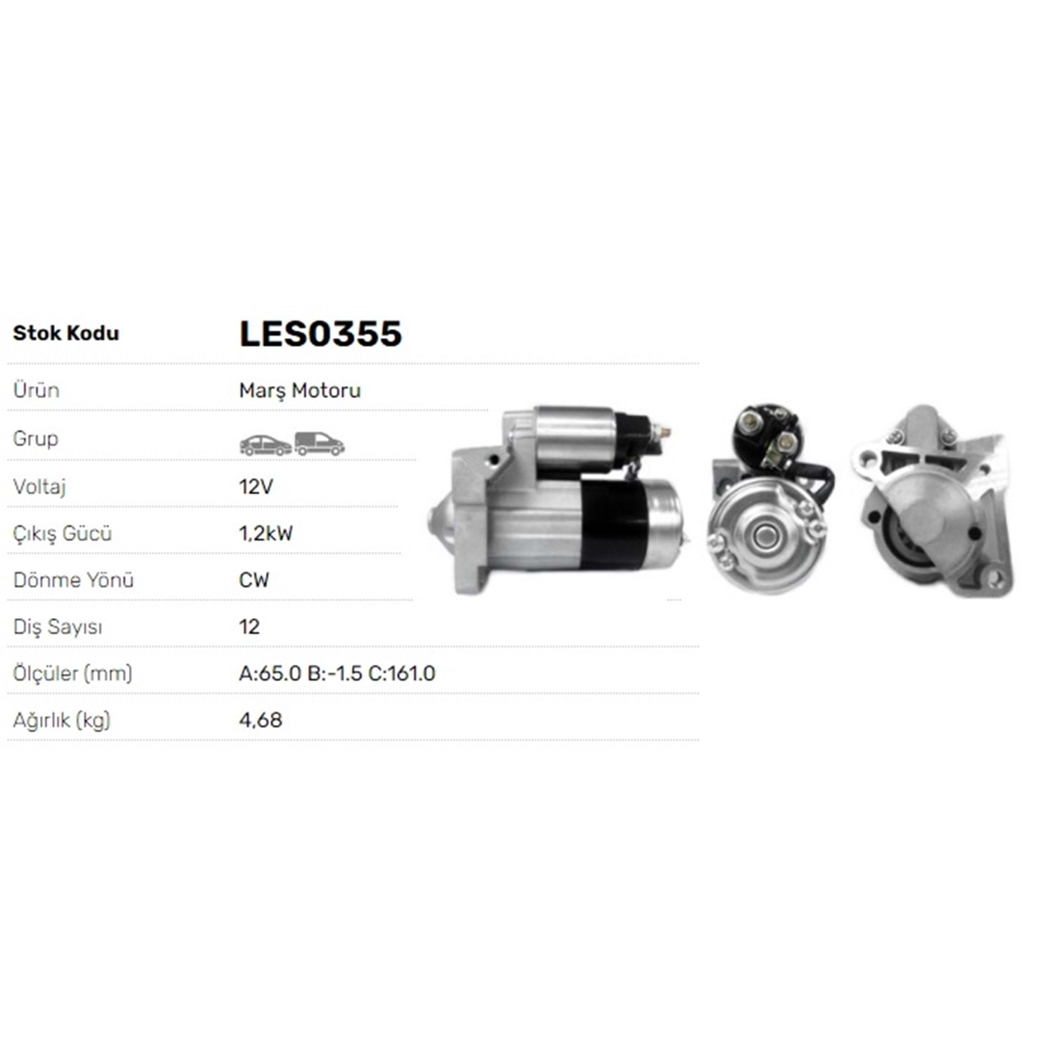 MARS MOTOR 12V 1.2KW 12DIS DACIA LOGAN 1.5