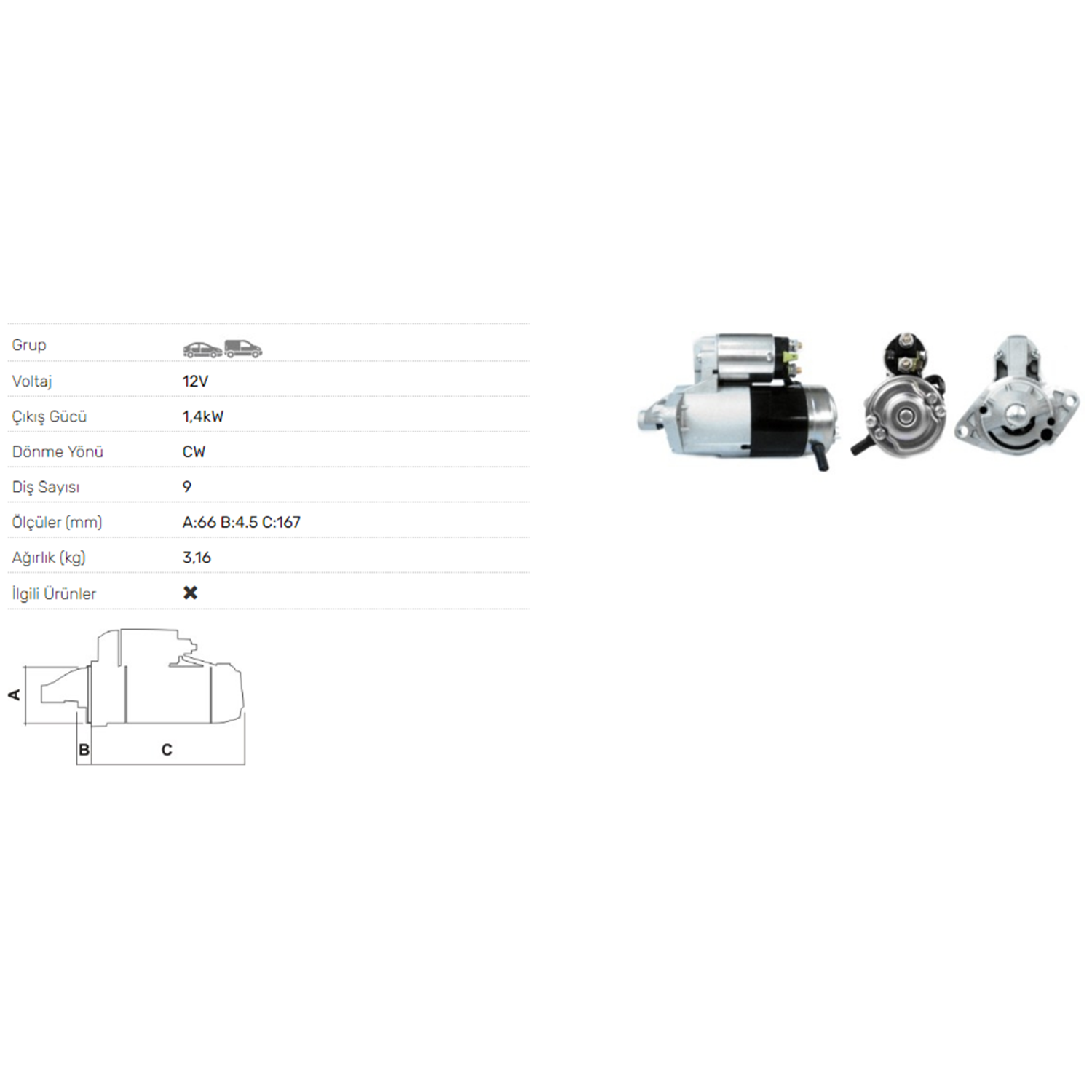 MARS MOTORU 12V 1.1KW 9 DIS CHEVROLET KAMYONET SUZUKI VITARA 1,6 89-99