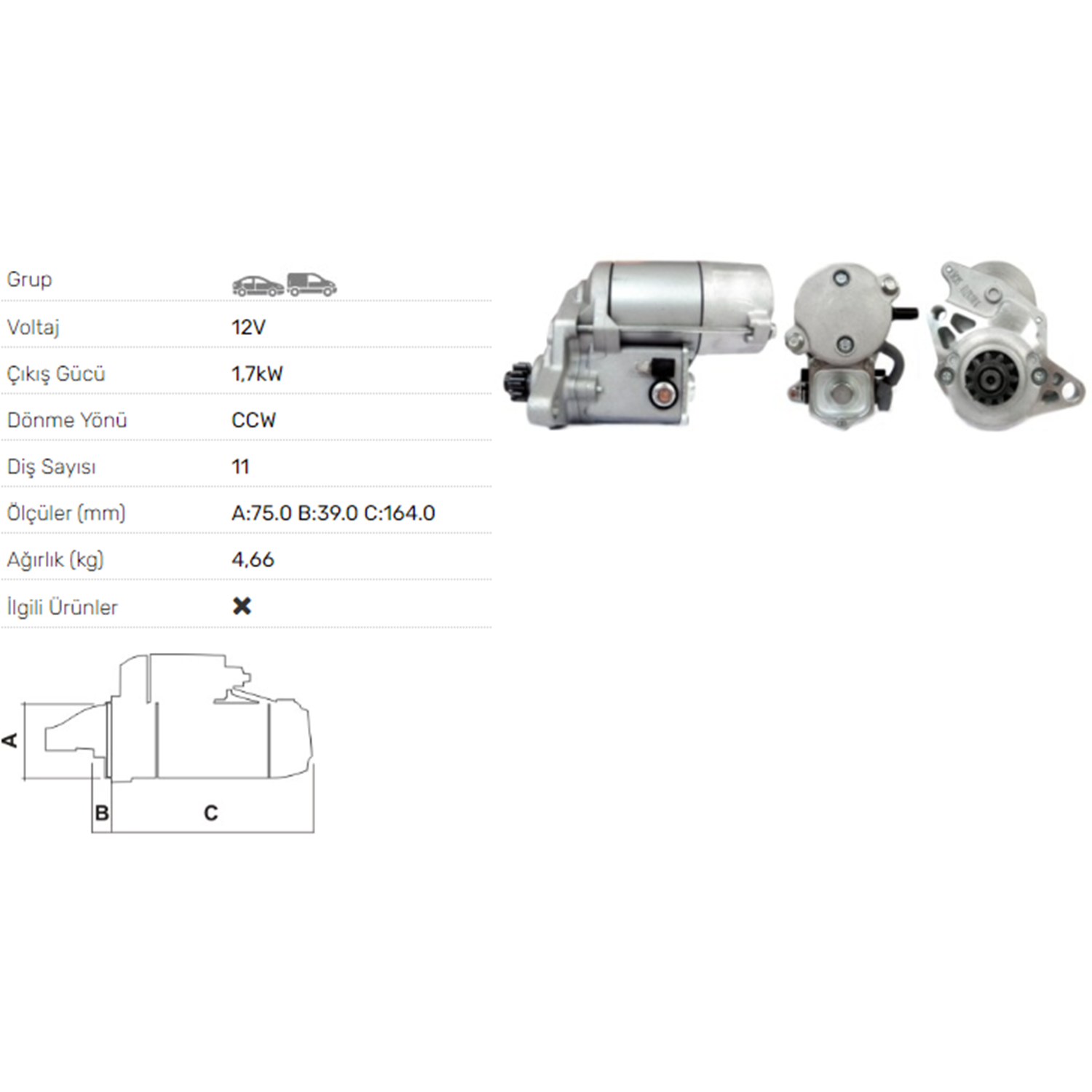 MARS MOTORU 12V 1.7KW 11 DIS ROVER 220D DI HATCHBACK SALOON 420D STR-5207