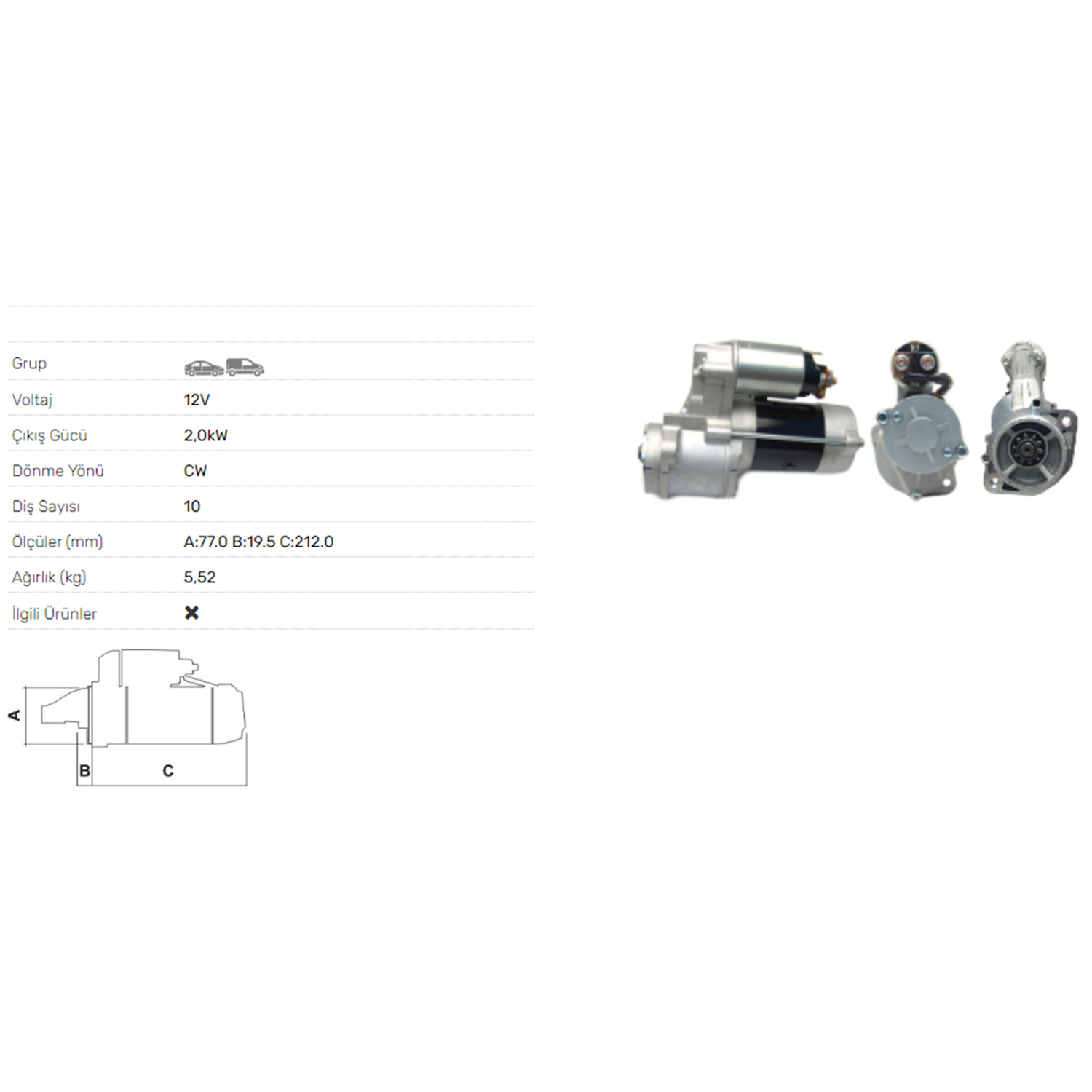 MARS MOTORU 12V 2.0KW 10 DIS HYUNDAI H1 BOX 2,5 CRDI STAREX 2,5 CRDI