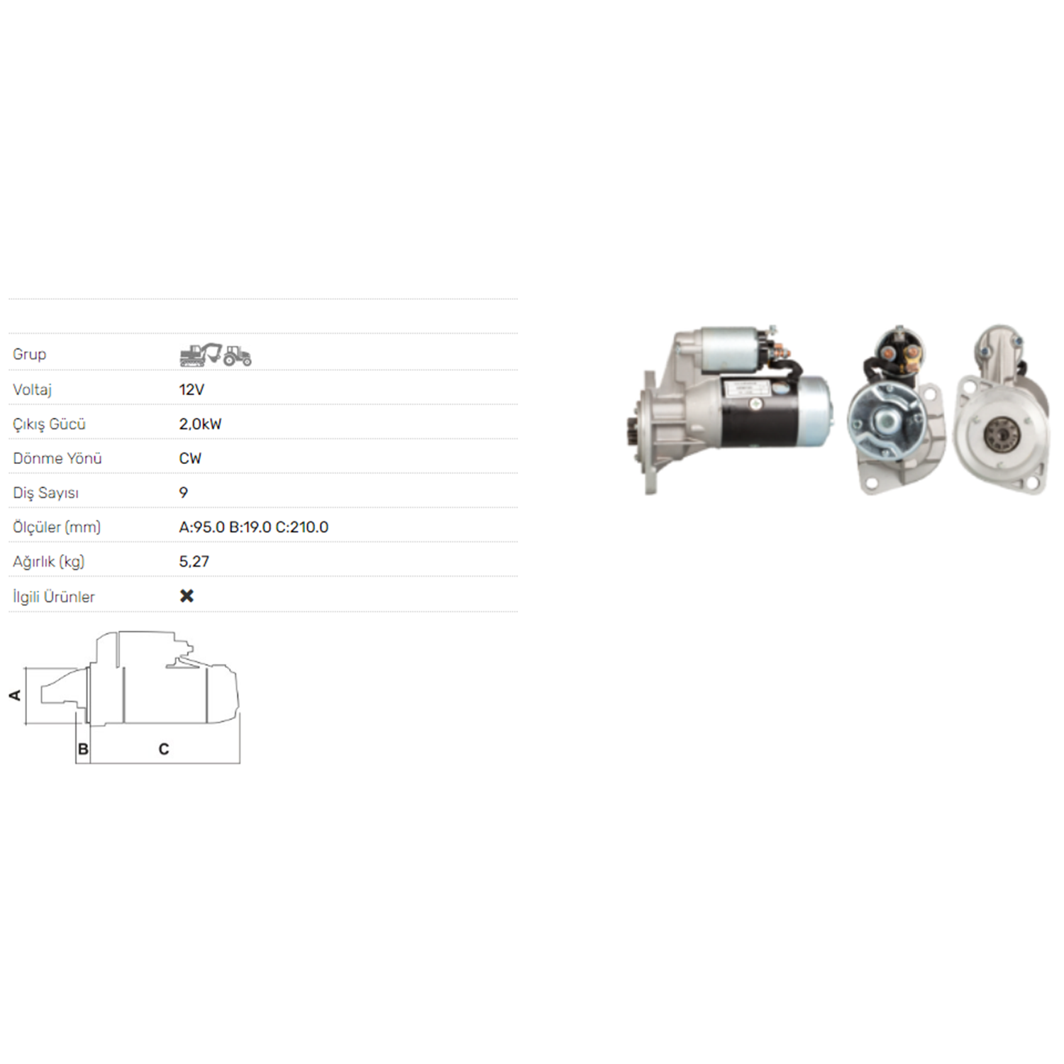 MARS MOTORU 12V 2.0KW 9 DIS ISUZU DIESEL MOTOR STR-6006