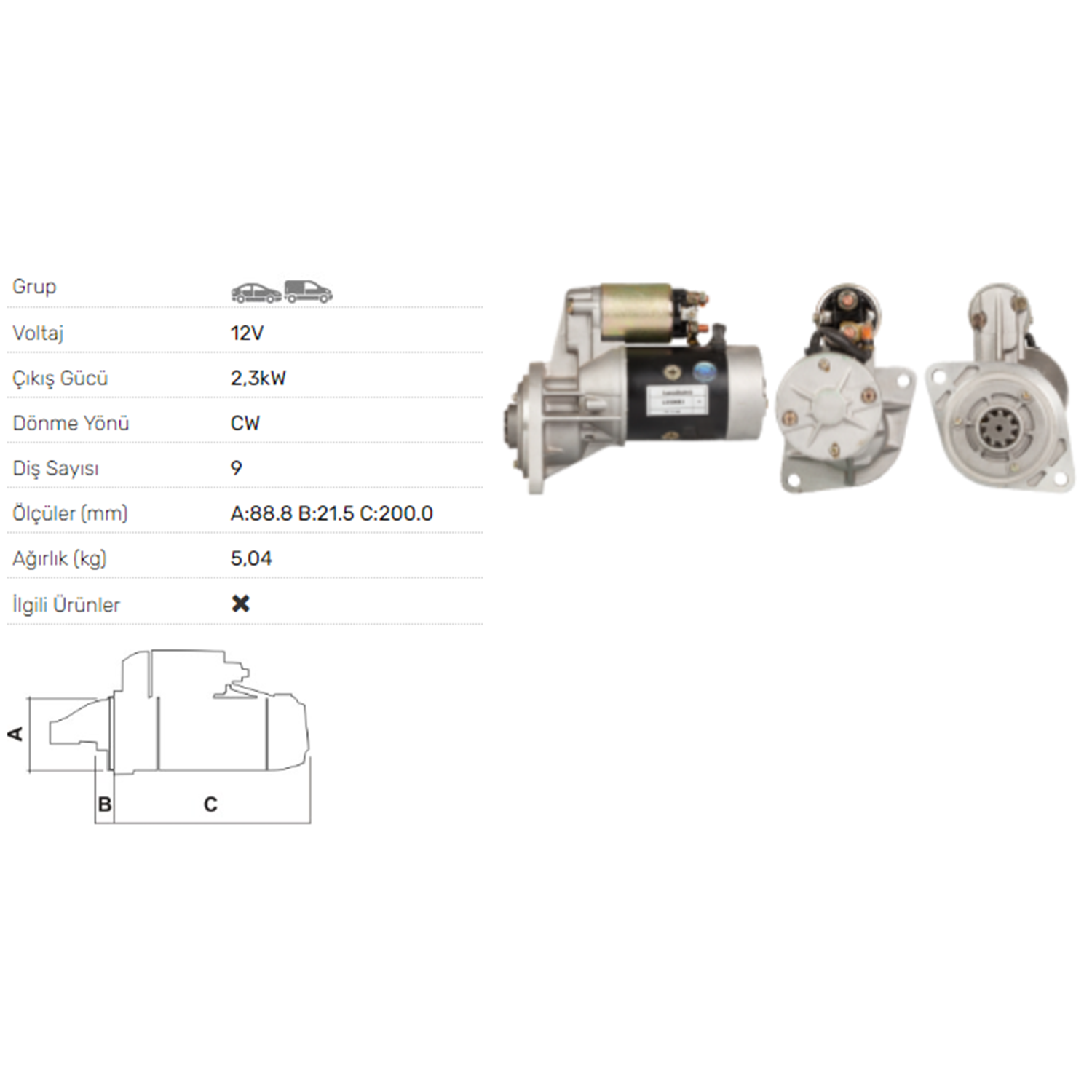 MARS MOTORU 12V 2.3KW 9 DIS BEDFORD MIDI 2.0 2.2 DIESEL