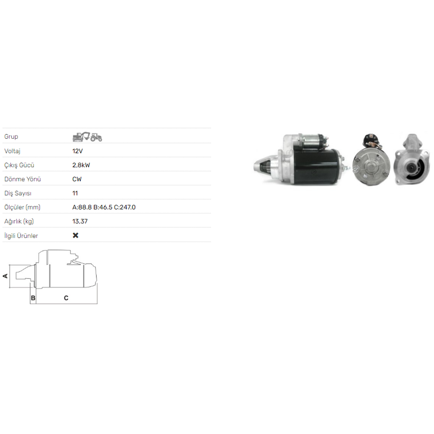 MARS MOTORU 12V 2.8KW 10 DIS LAMBORGHINI TRAKTOR RENAULT