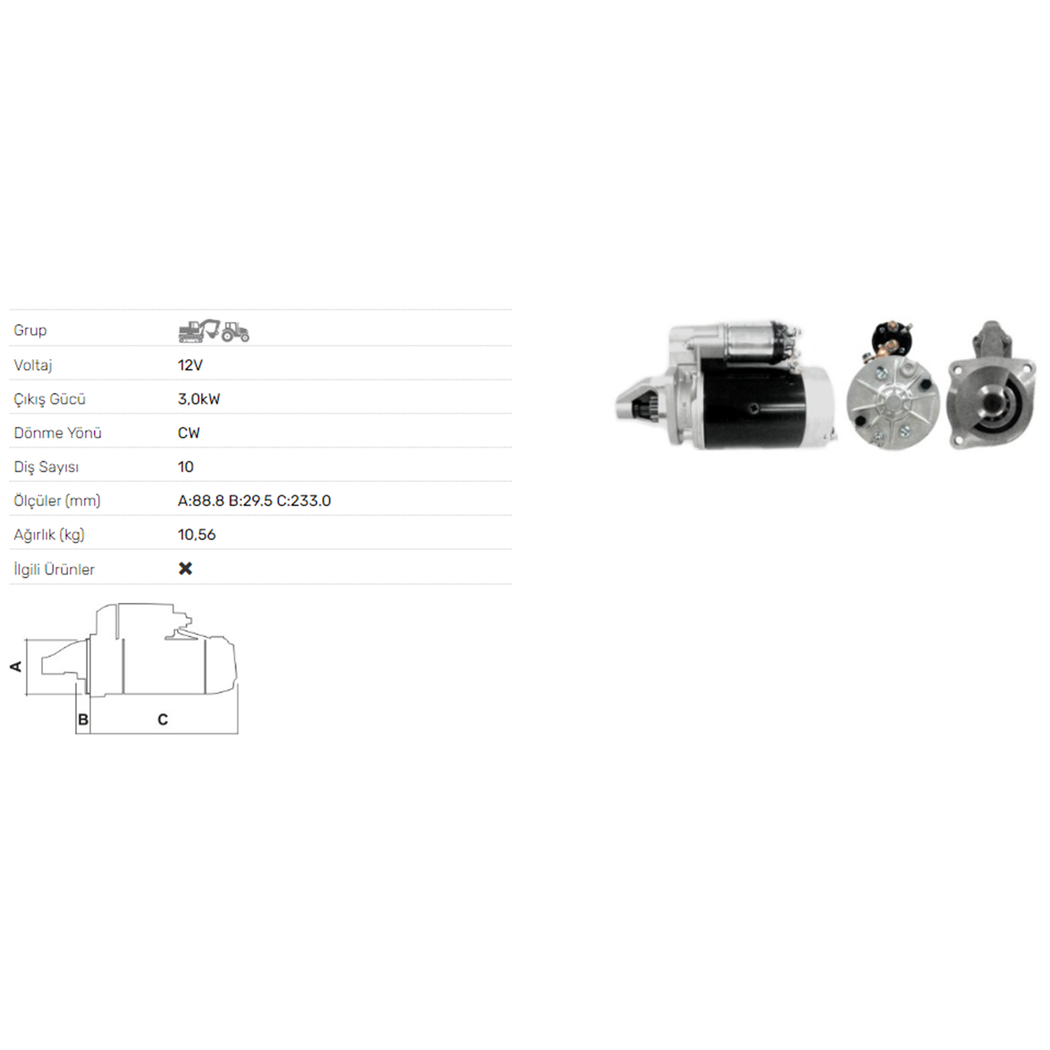 MARS MOTORU 12V 3.0KW 10 DIS IMR MOTOR USRSUS TRAKTOR KIPER