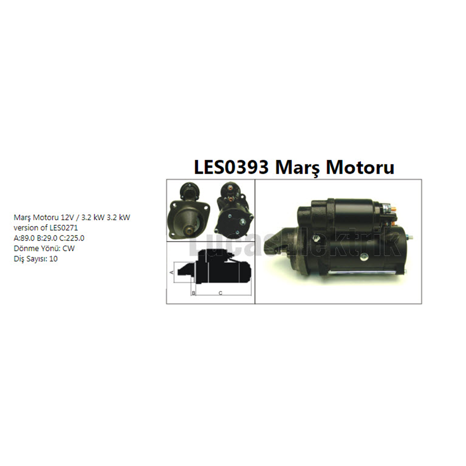 MARS MOTORU 12V 3.2KW 10DIS BASAK TRACKTOR 2080 2090