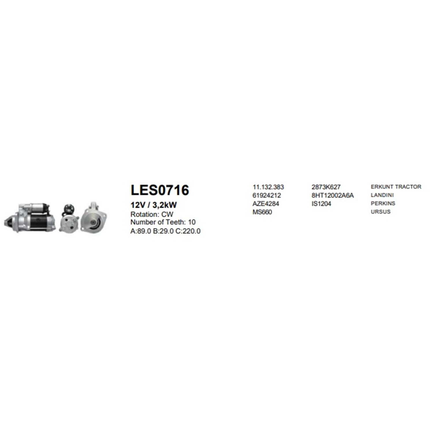 MARŞ MOTORU 12V 3.2KW 10DIS ERKUNT TRAKTOR PERKINS LANDINI