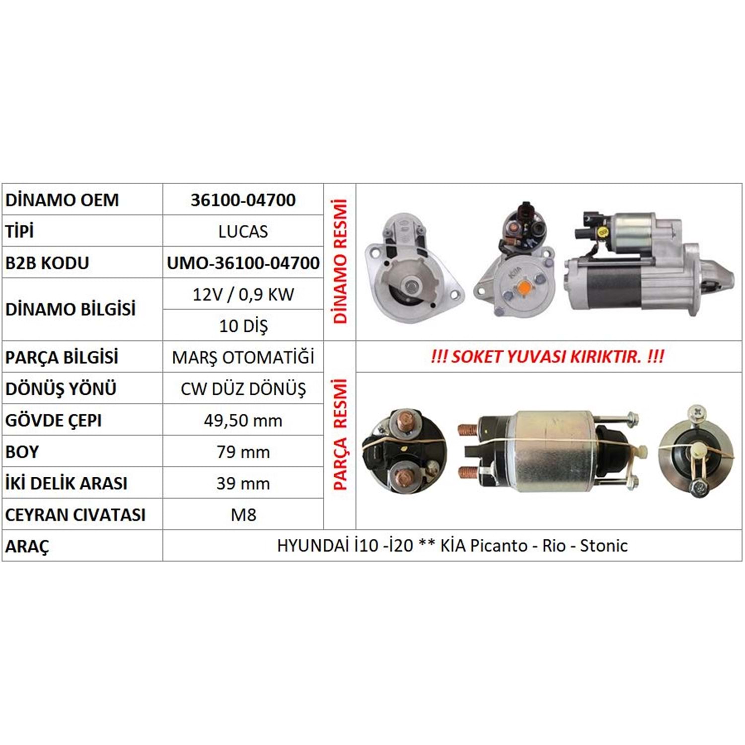 MARS OTOMATIGI (ORIJINAL) 12V 0,9 KW HYUNDAI I10 - I20 1.2 / KIA PICANTO - RIO - STONIC (GOVDE CAPI: 49,50MM - BOY: