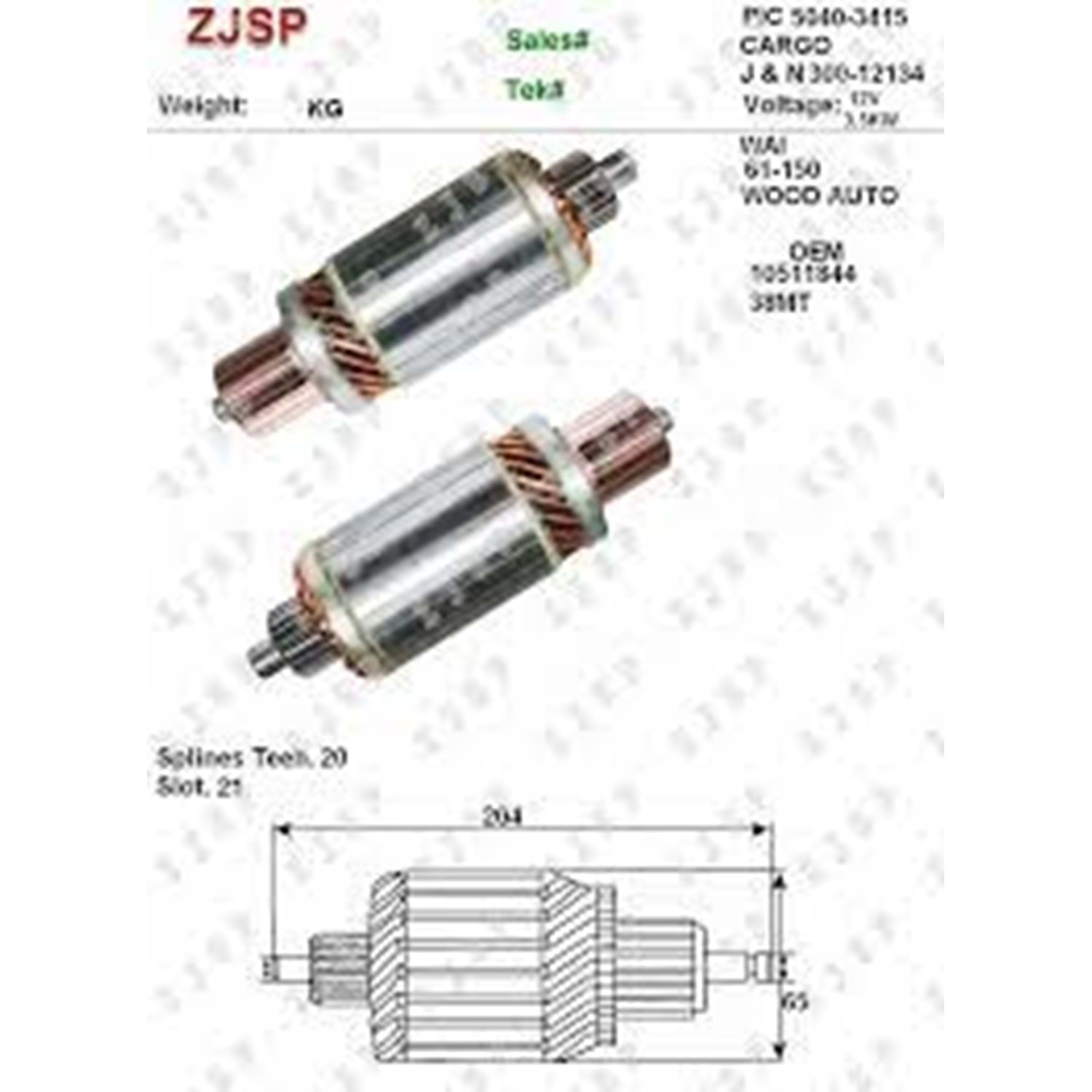 ÇAPI : 65 MM / BOYU : 205 MM / 21 DİLİM / 20 DİŞ