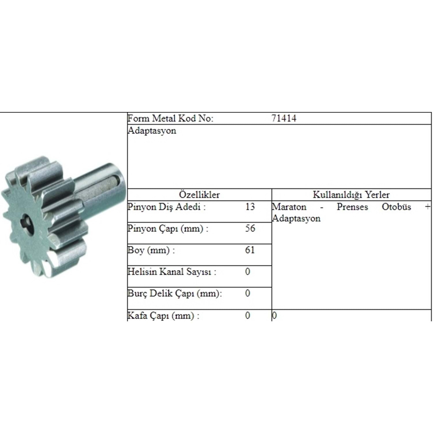 BOY 83 MM / KAFA ÇAPI 40 MM / İÇ ÇAPI 14,30 MM / KANAL 10 / 11 DİŞ Stok Kodu : G-FORM 52889 Stok Miktarı : Stokta Var
