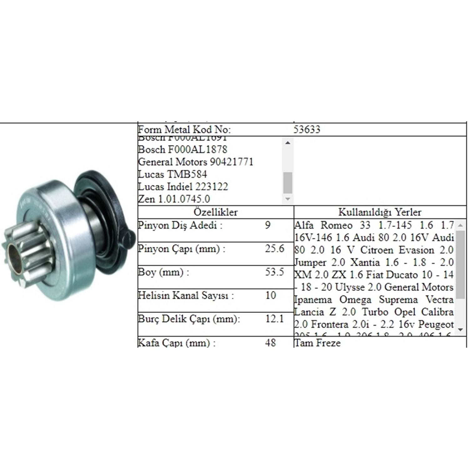 Bosch 1006209584, 1006209600, 1006209686, 1006209993, 1006209997, 1986SE1650, 9001081033, F000AL1878