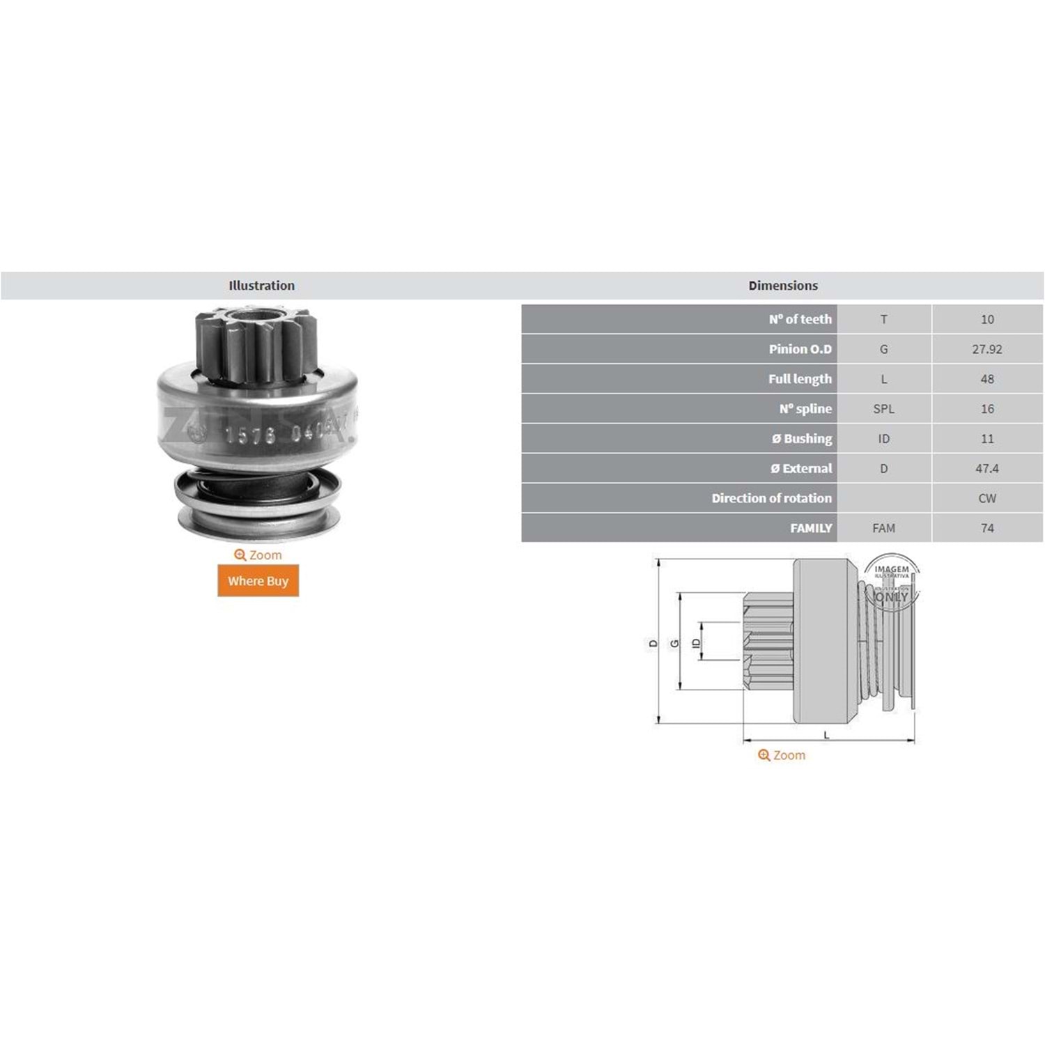 BOY 43,00 MM / KAFA ÇAPI 28,00 MM / İÇ ÇAPI 11,00 MM / KANAL 16 / 10 DİŞ