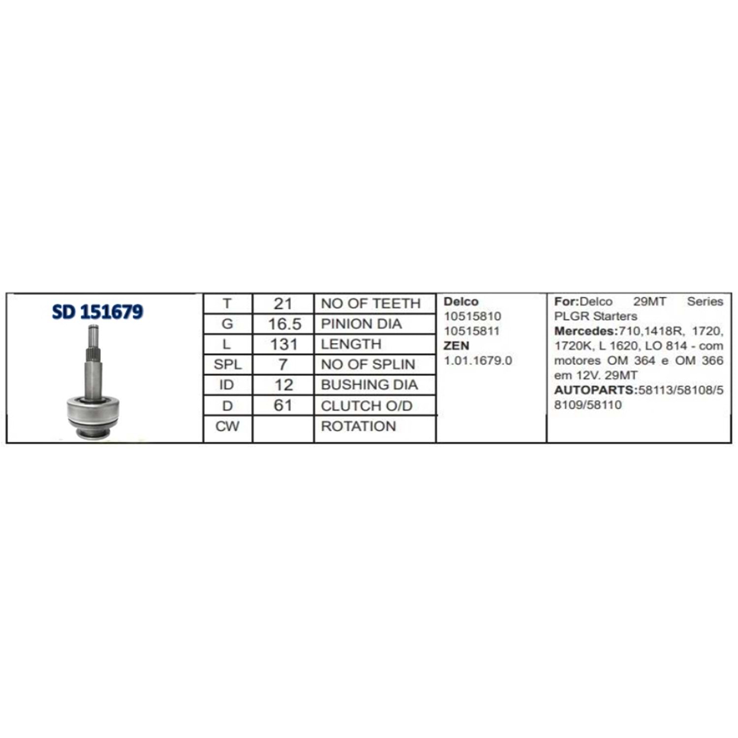 Delco Remy 10515810 KRAUF SDD8813PN, SDD8813ZE ZAUFER 315N10367Z Zen 1679