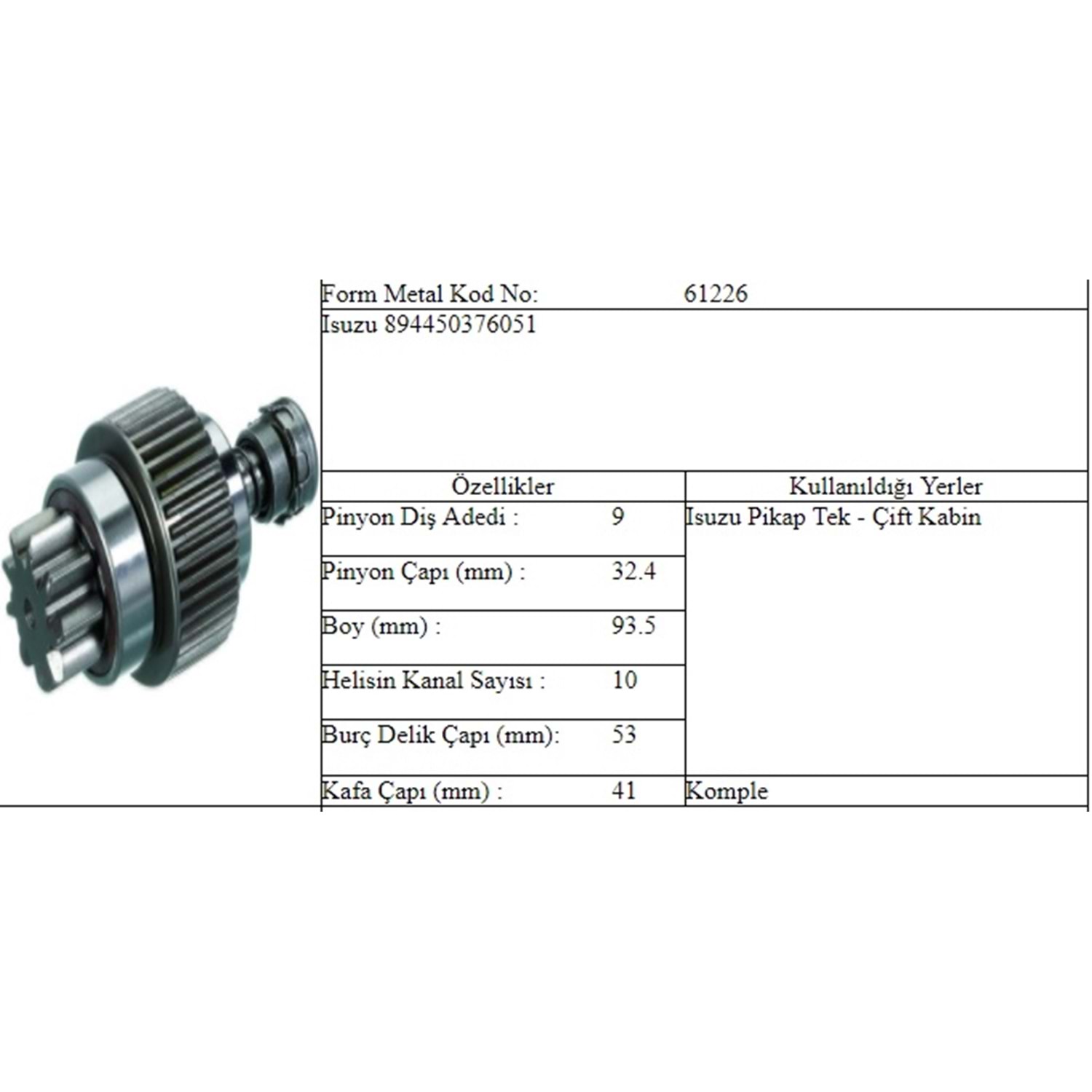 M.DİŞLİ 9 DİŞ ISUZU TFR PICK - UP