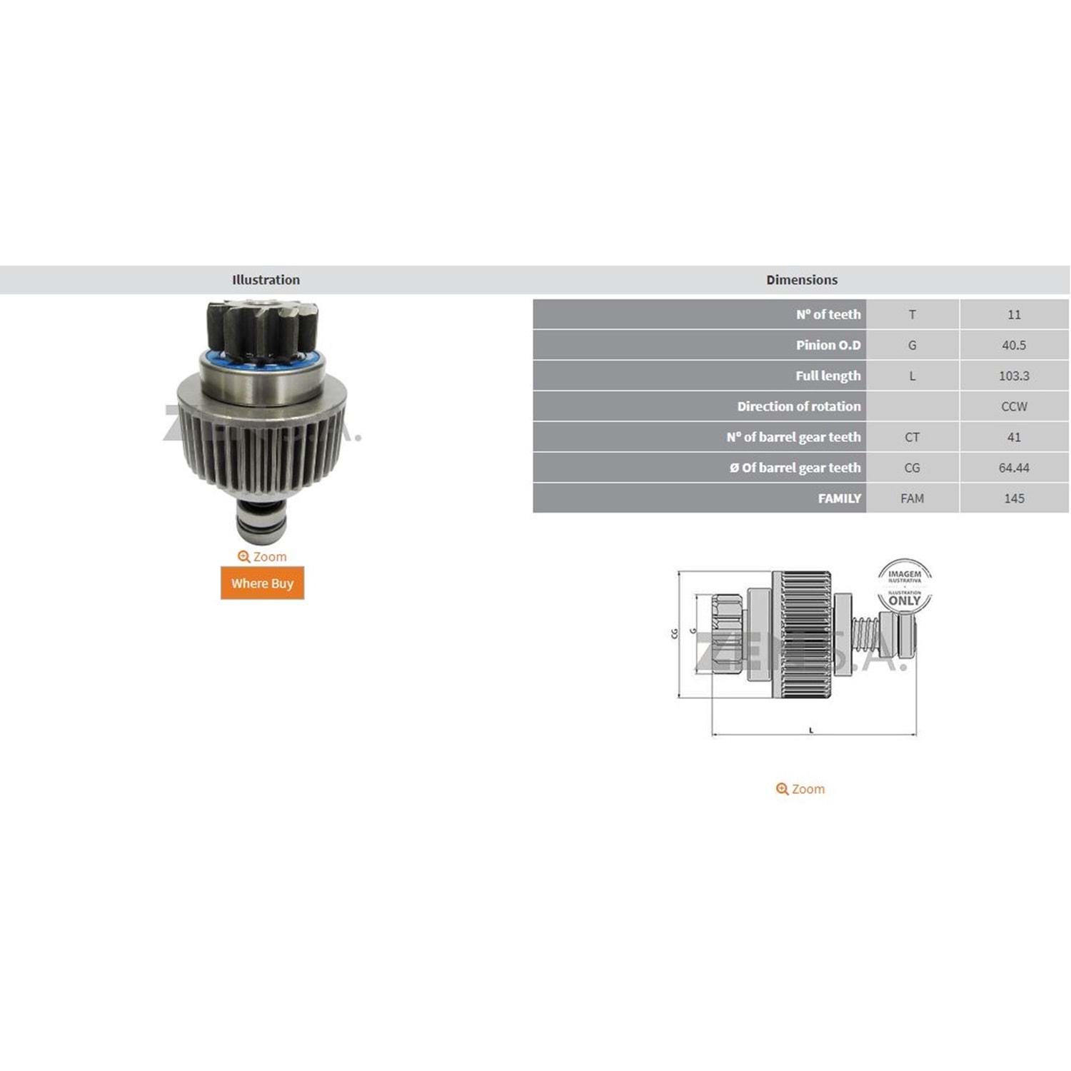 BOY 105,00 MM / KAFA ÇAPI 40,00 MM / GÖVDE ÇAPI 64,50 MM / 11 DİŞ / KISA TİP