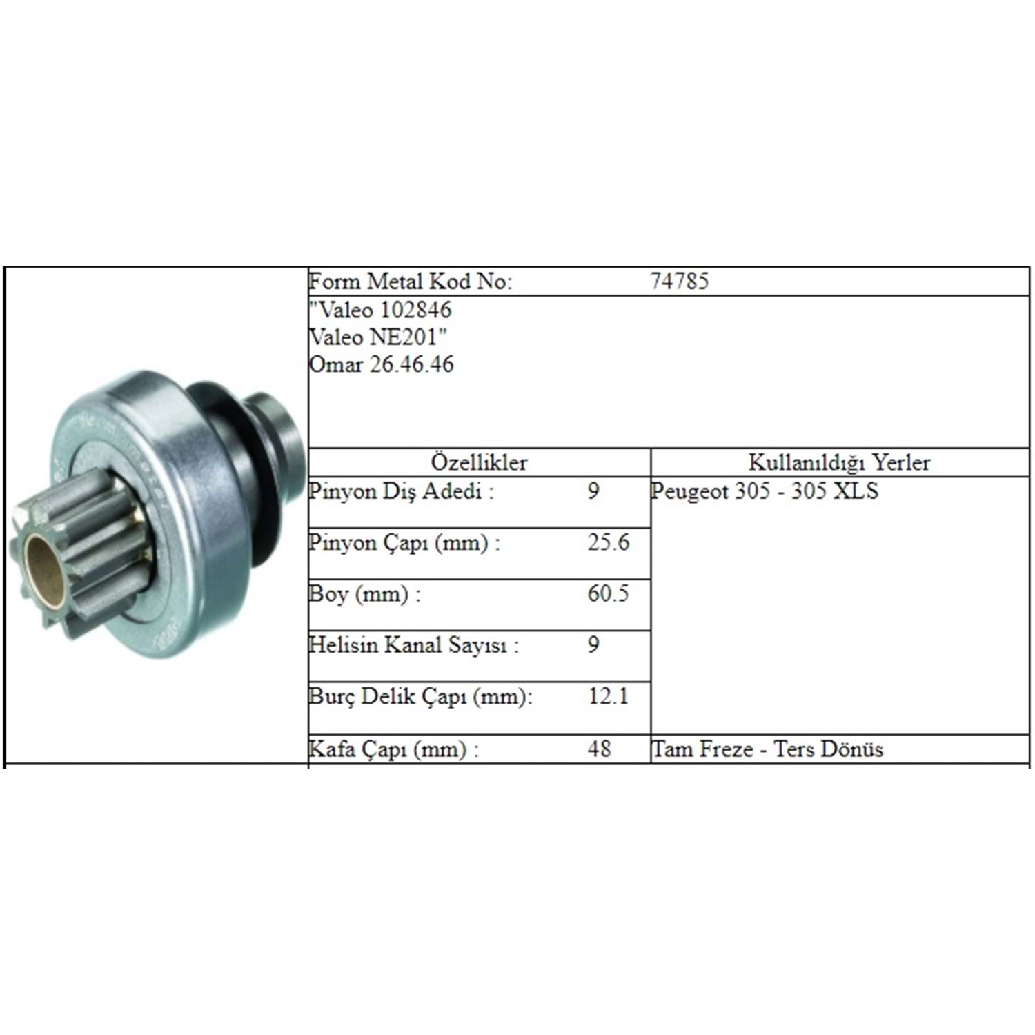 M.DİŞLİ 9 DİŞ PEUGEOT 305 XLS