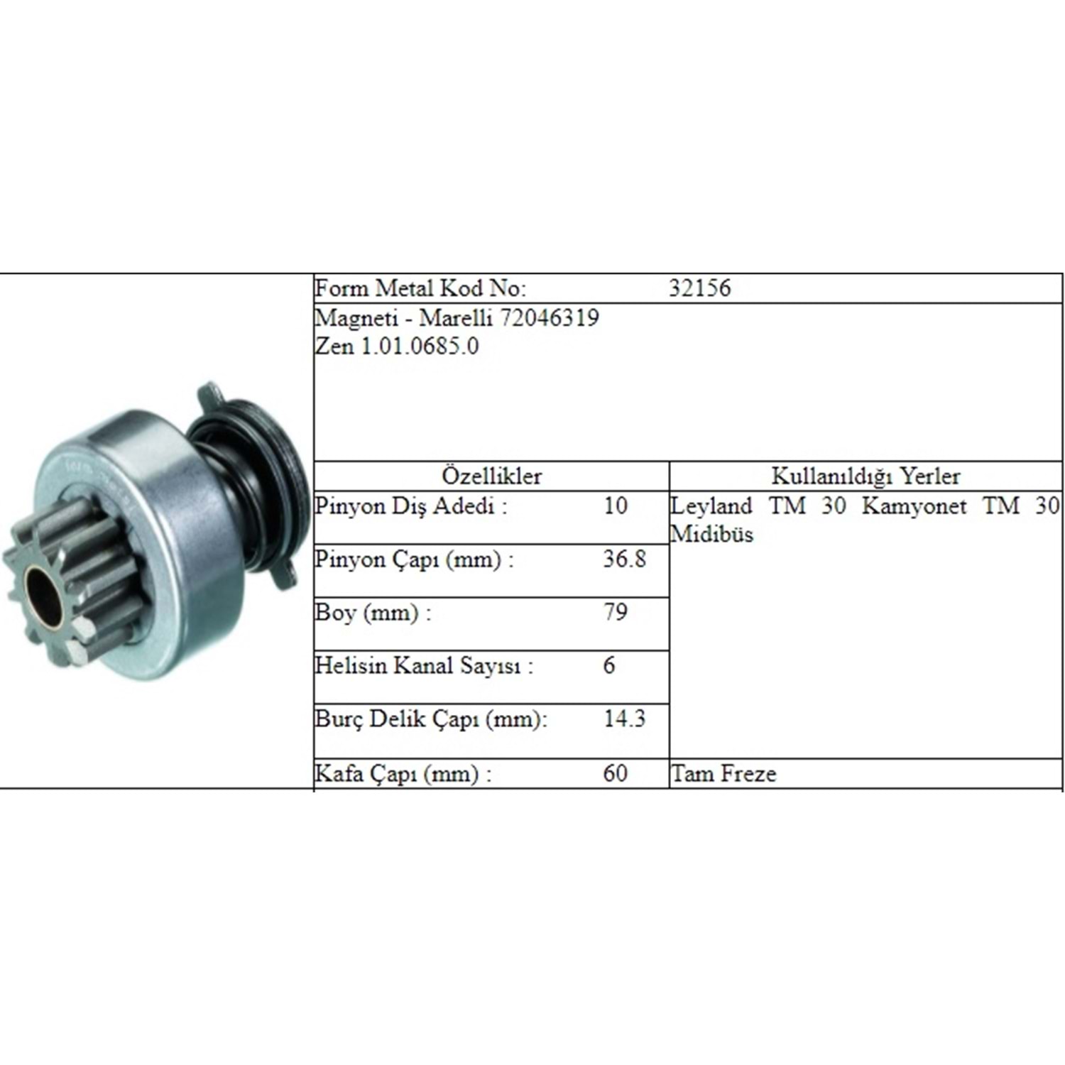 M.DİŞLİ 10 DİŞ BMC TM 30 6 KAN.DIŞTAN FREZE