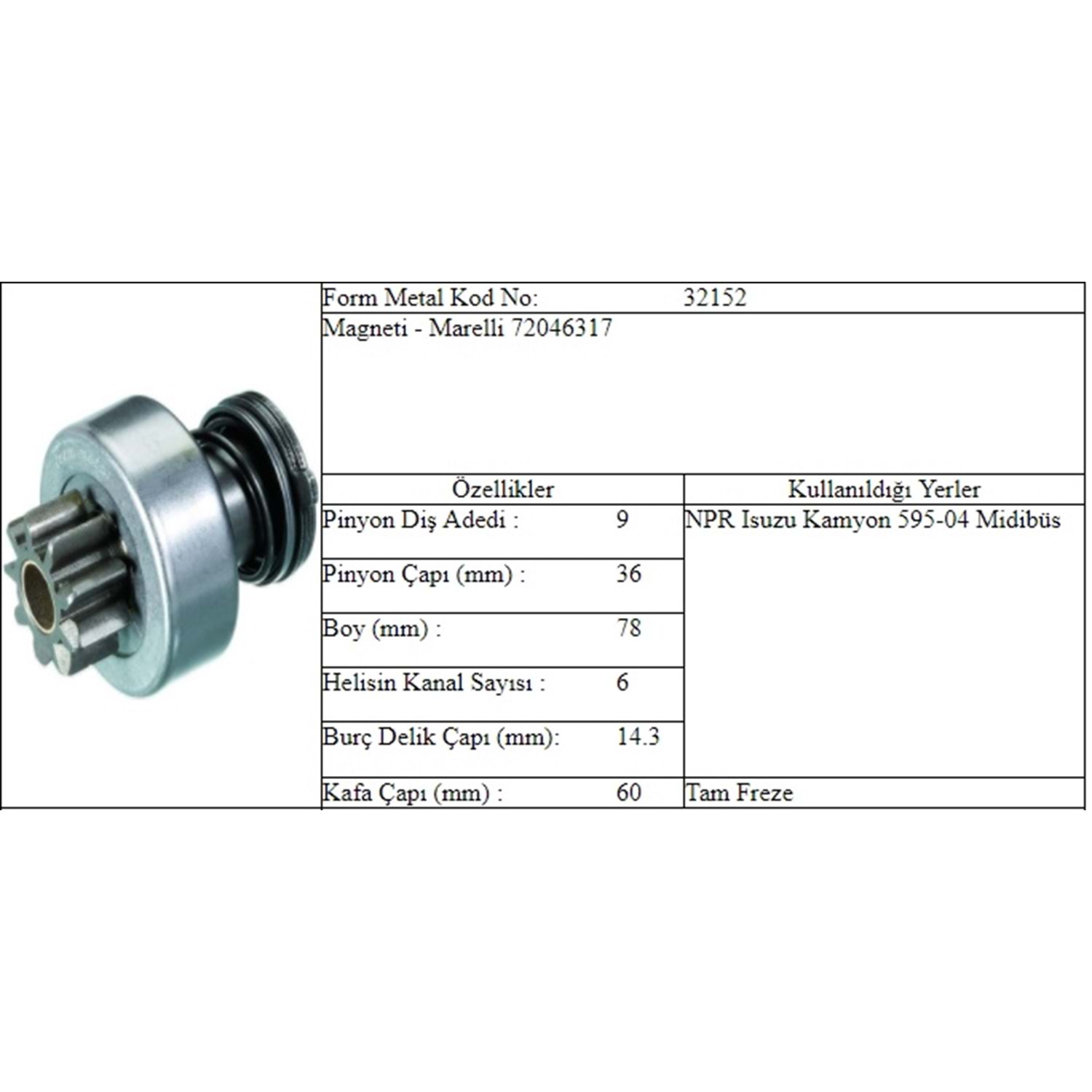 M.DİŞLİ 9 DİŞ ISUZU NPR DIŞTAN FREZE