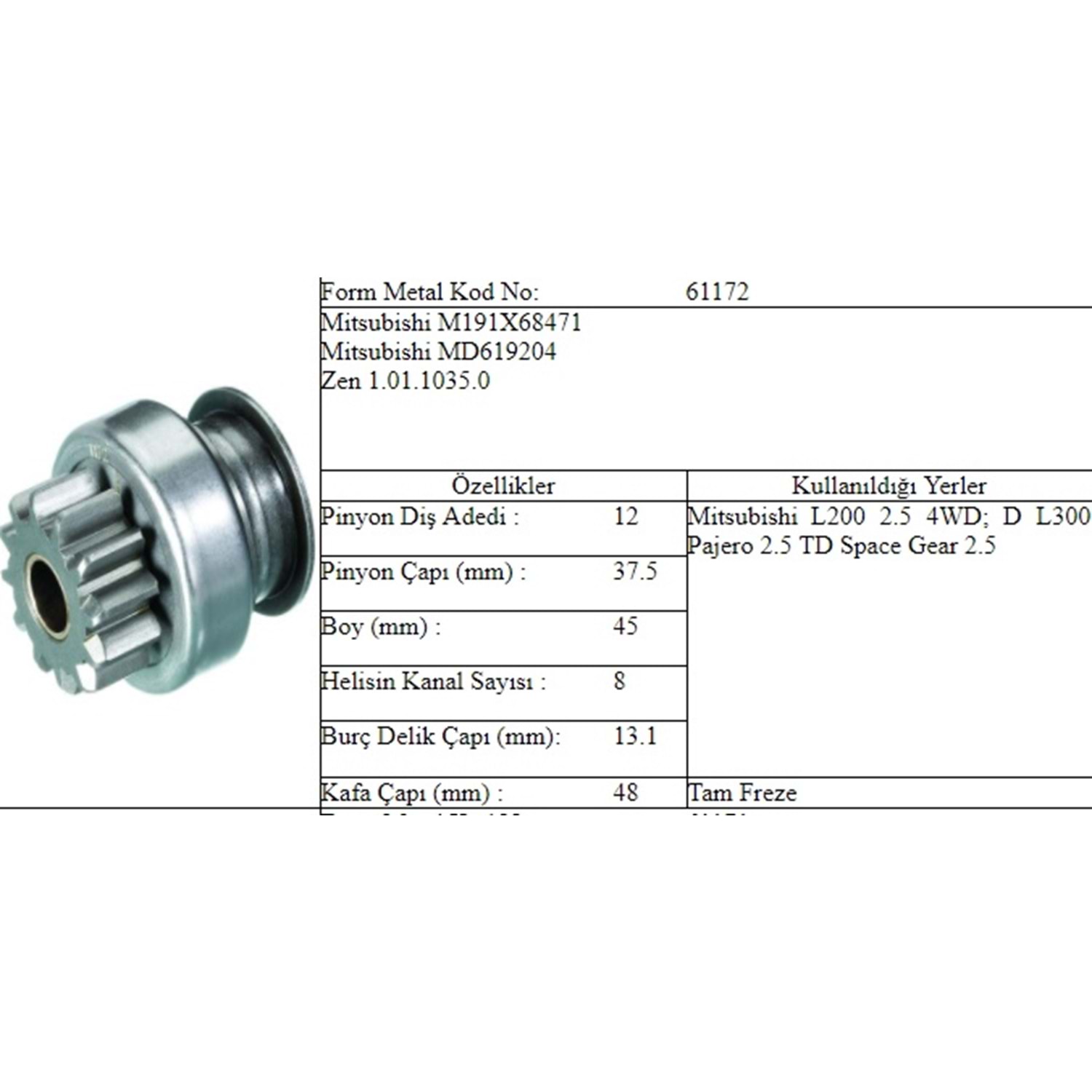 M.DİŞLİ 12 DİŞ MITSUBISHI L 200 300 Y.M.98 -