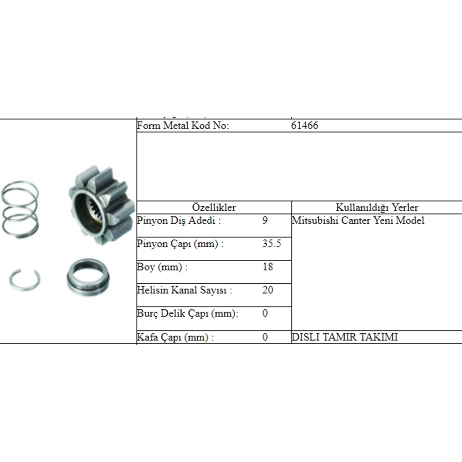 M.DİŞLİ 9 DİŞ DİŞLİ UCU CANTER Y.M. MITSUBISHI