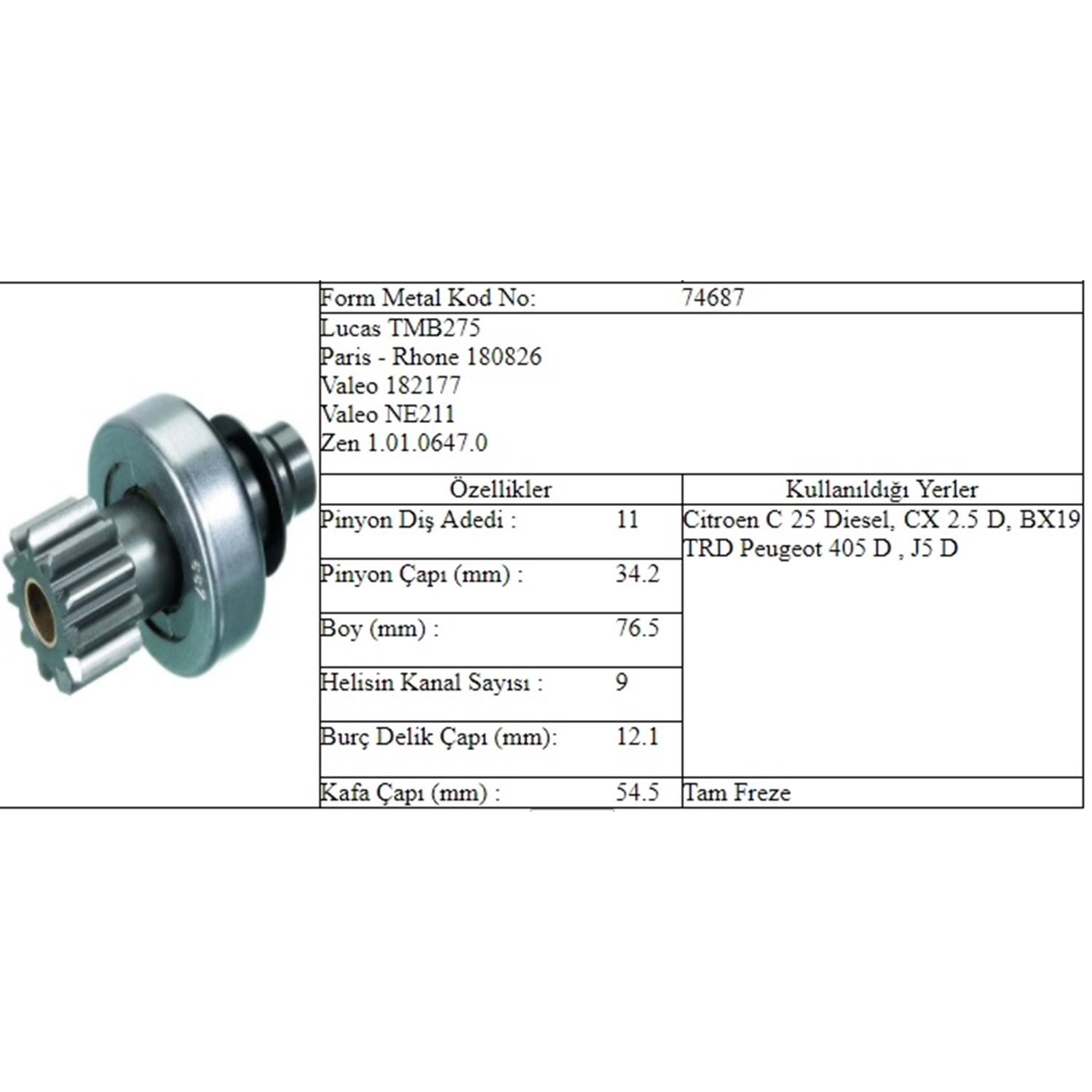 M.DİŞLİ 11 DİŞ CITROEN PEUGEOT V211