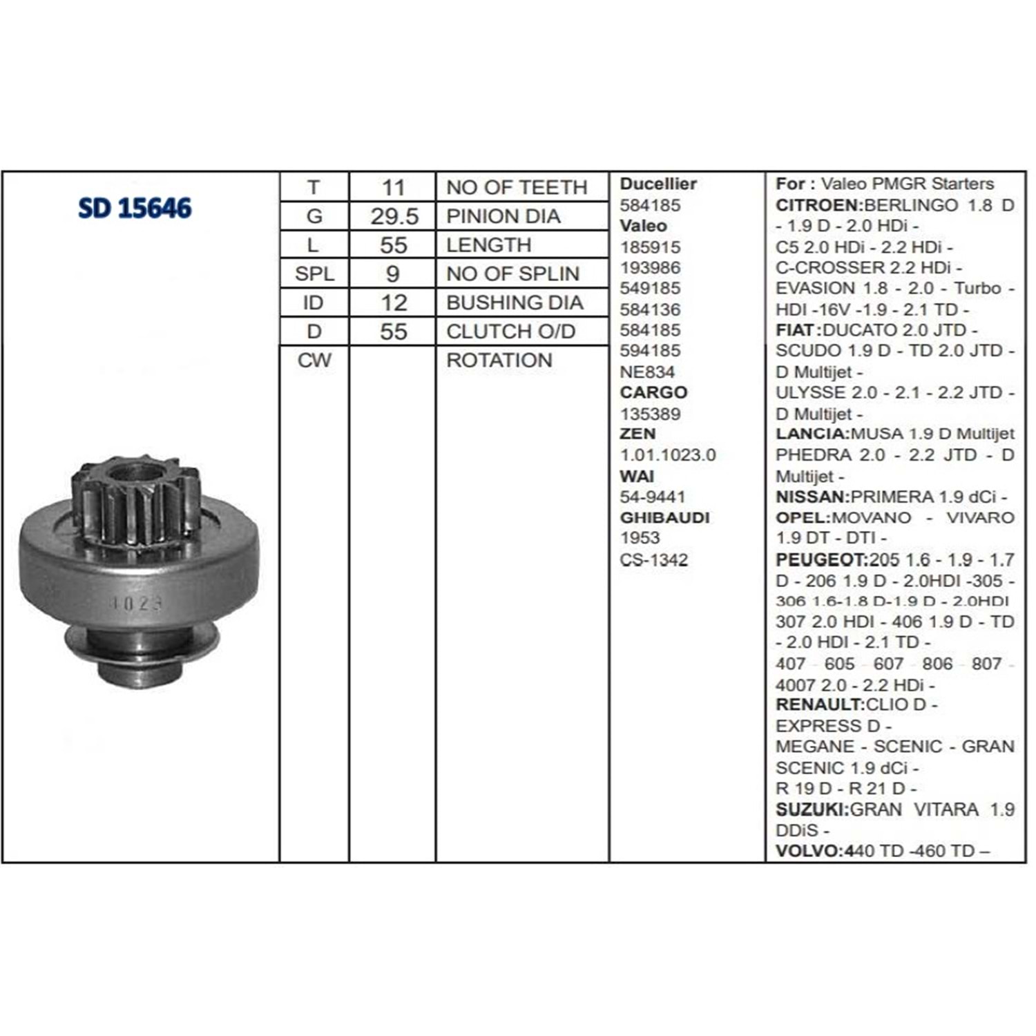 M.DİŞLİSİ 11 DİŞ RENAULT-19 D/DAEWOO/PEUGEOT PARTN