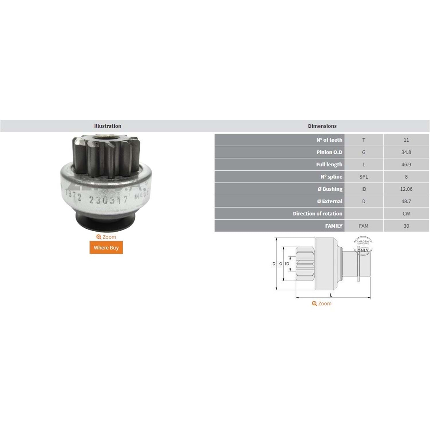 BOY 47,00 MM / KAFA ÇAPI 35,00 MM / İÇ ÇAPI 12,00 MM / KANAL 8 / 11 DİŞ