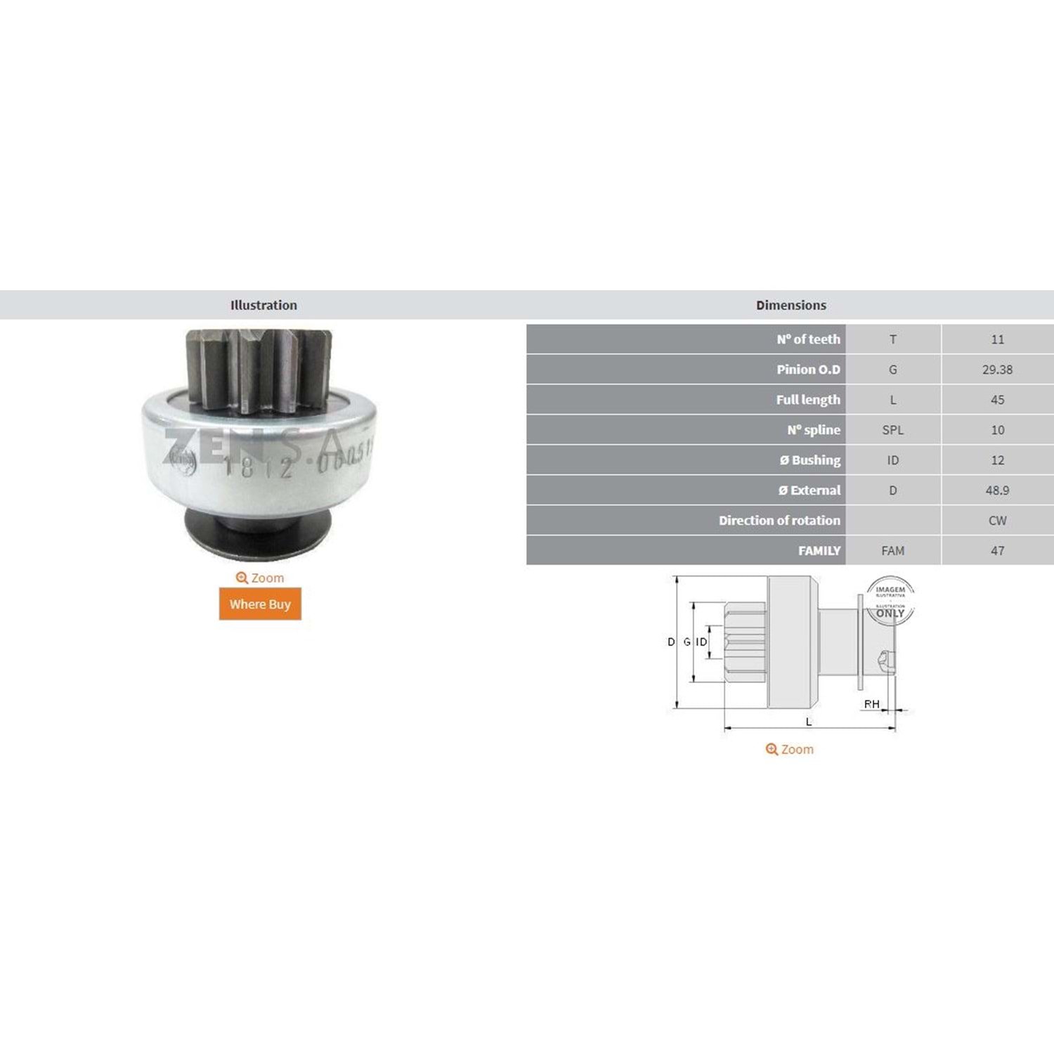 BOY 45,00 MM / KAFA ÇAPI 29,30 MM / İÇ ÇAPI 12,00 MM / KANAL 10 / 11 DİŞ