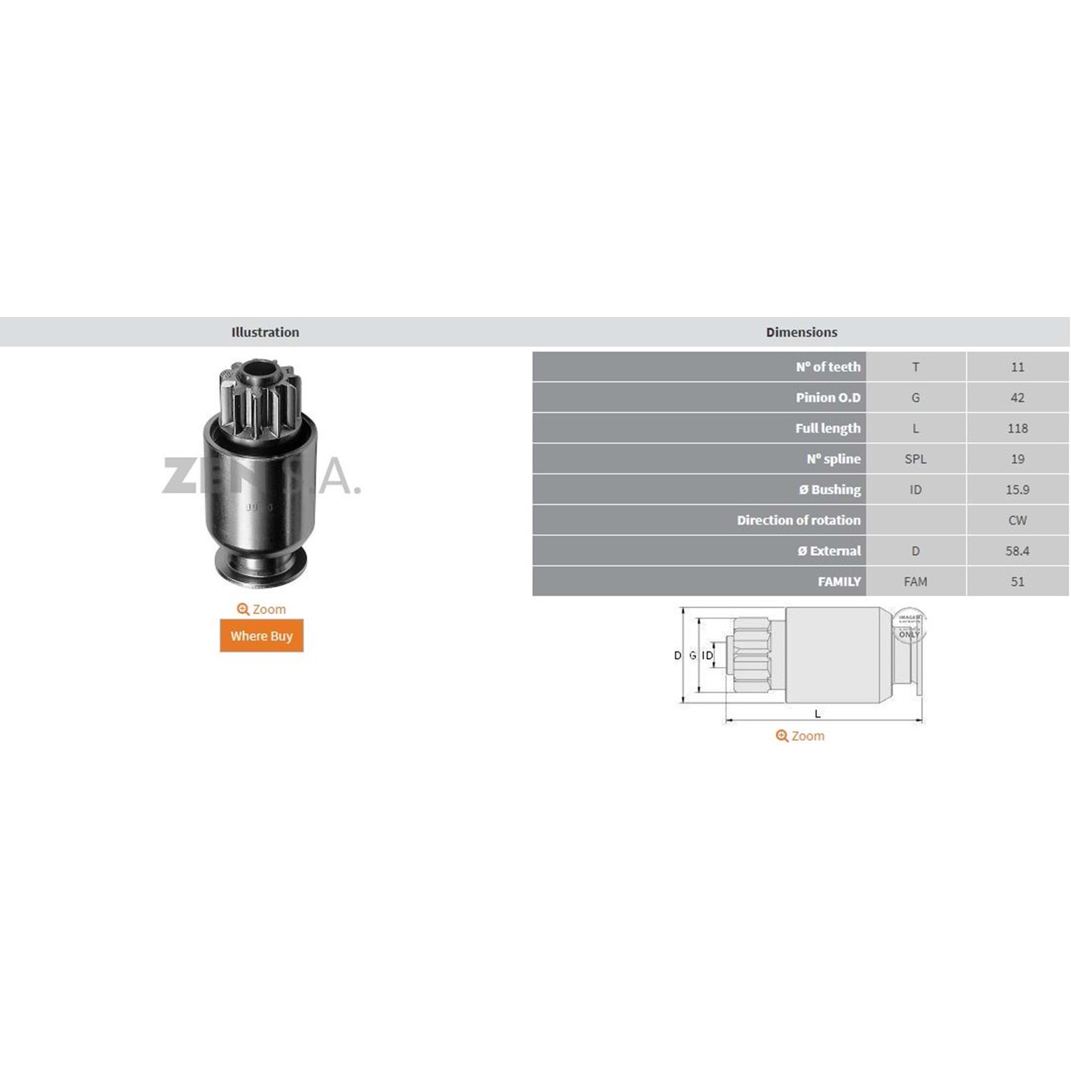 BOY 118 MM / KAFA ÇAPI 41 MM / İÇ ÇAP 15,90 MM / KANAL 19 / DİŞ 11
