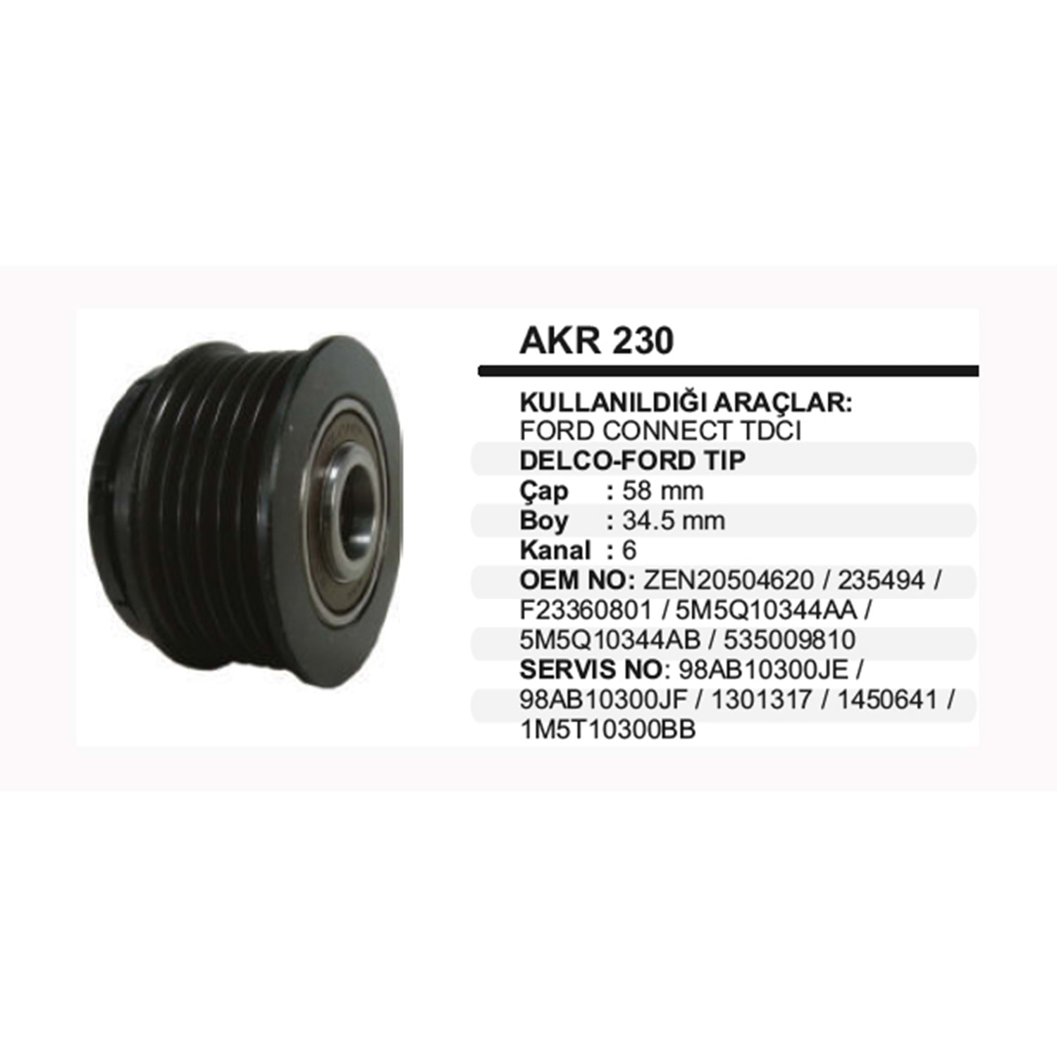 ALT KASNAK RULMANLI FORD CONNECT