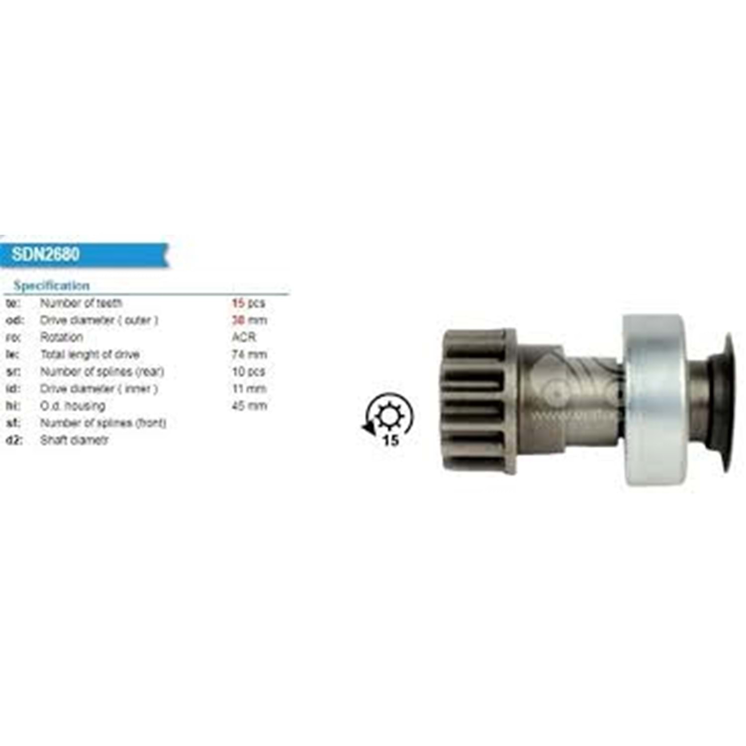 te: Number of teeth 15 pcs