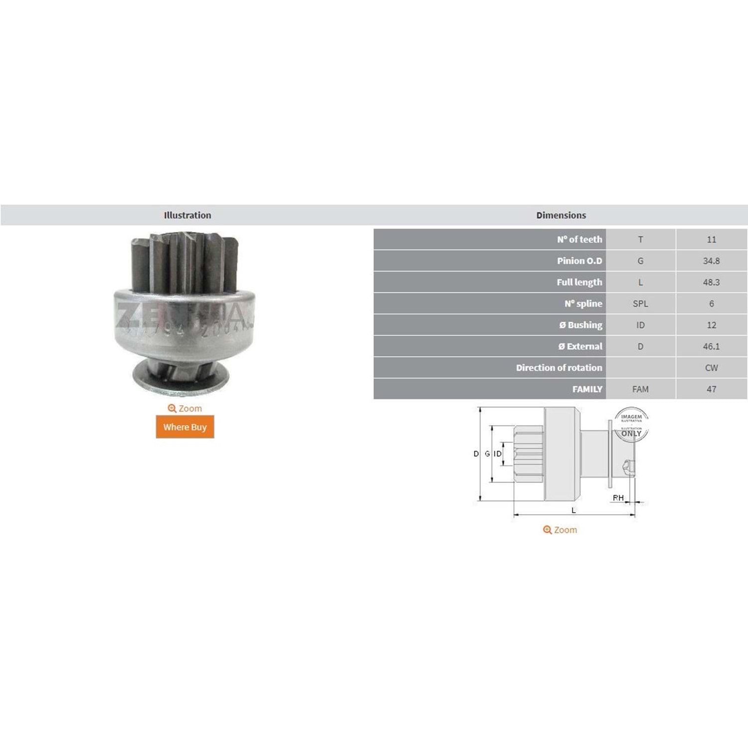 BOY 48,30 MM / KAFA ÇAPI 34,80 MM / İÇ ÇAPI 12,00 MM / KANAL 6 / 11 DİŞ