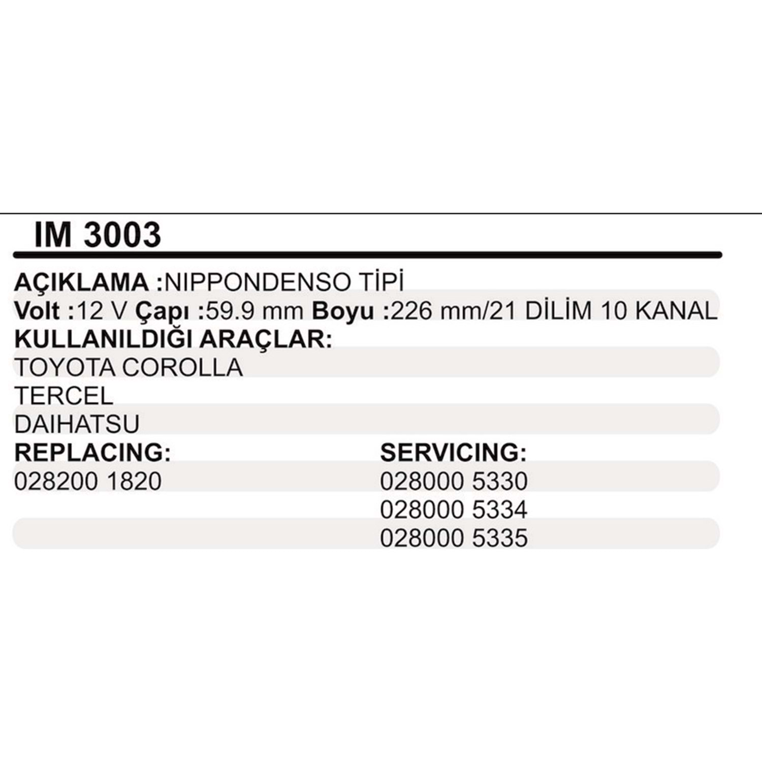 MARS KOLLEKTOR 12V 10 KANAL NIPPODENSO TIPI TOYOTA COROLLA TERCEL DAIHATSU