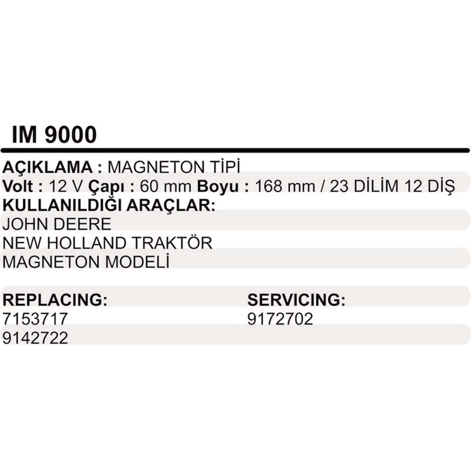 MARS KOLLEKTOR 12V 12 DIS PAL&MAGNETON TIPI JOHN DEERE NEW HOLLAND TRAKTOR MAGNETON MODELI