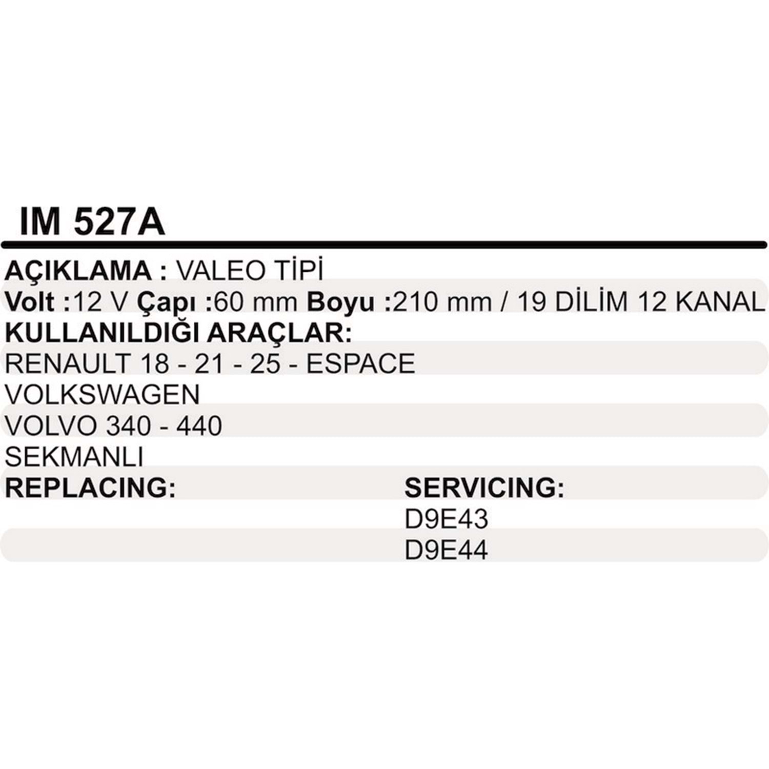 MARS KOLLEKTOR 12V 12 KANAL VALEO TIPI RENAULT R18 R21 R25 ESPACE VOLKSWAGEN VOLVO 340 440 SEKMANLI