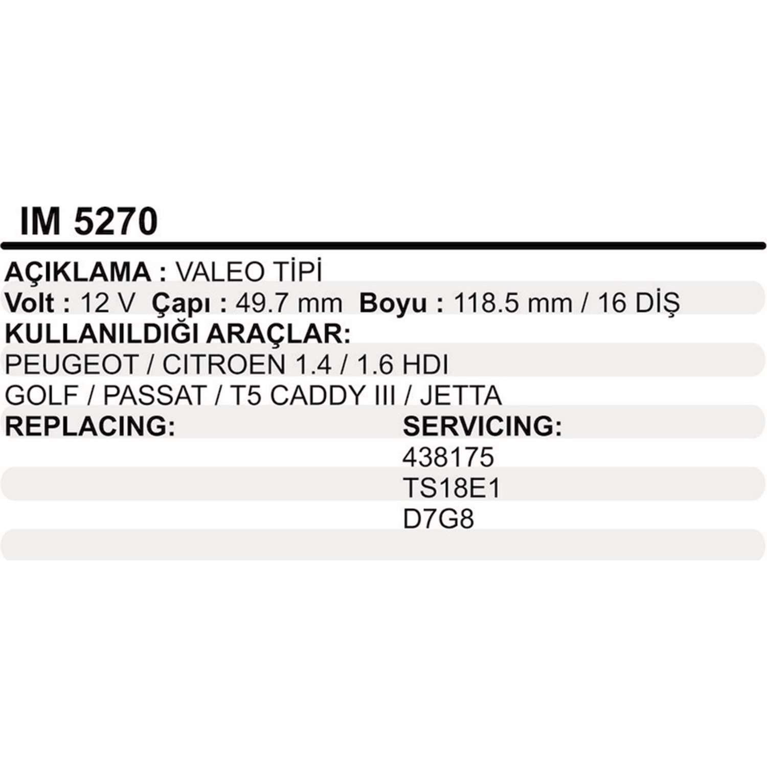 MARS KOLLEKTORU 12V 16 DIS VALEO TIPI PEUGEOT CITROEN 1,4 1,6 HDI VW GOLF PASSAT T5 CADDY III JETTA