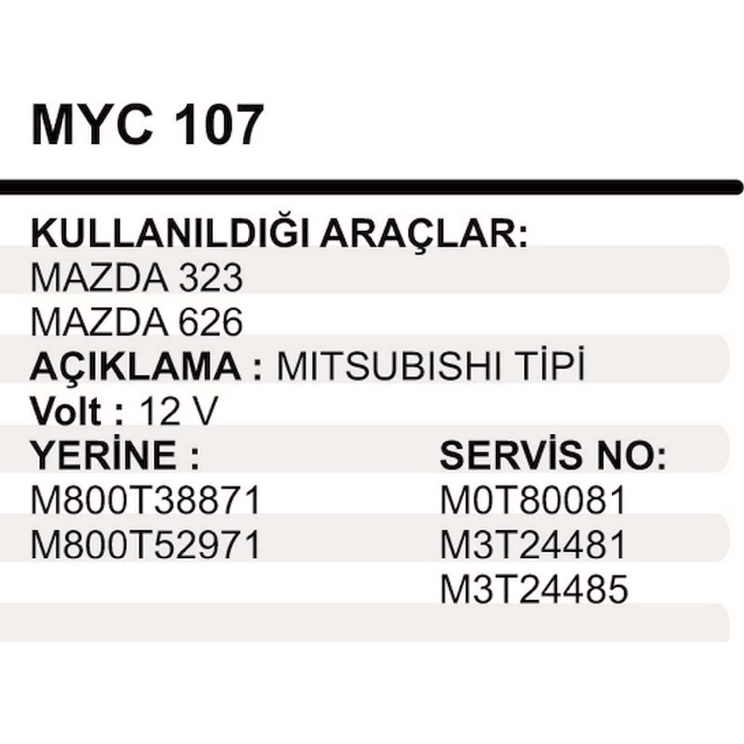 MARS YASTIGI GOVDELI 12V MAZDA 49006