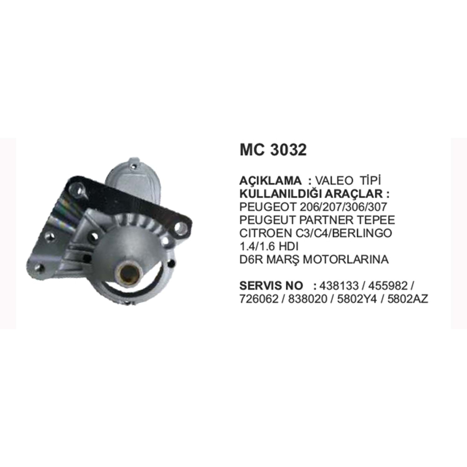 PİNYON KAPAĞI D6R PEUGEOT 206 306 C3 C4 1