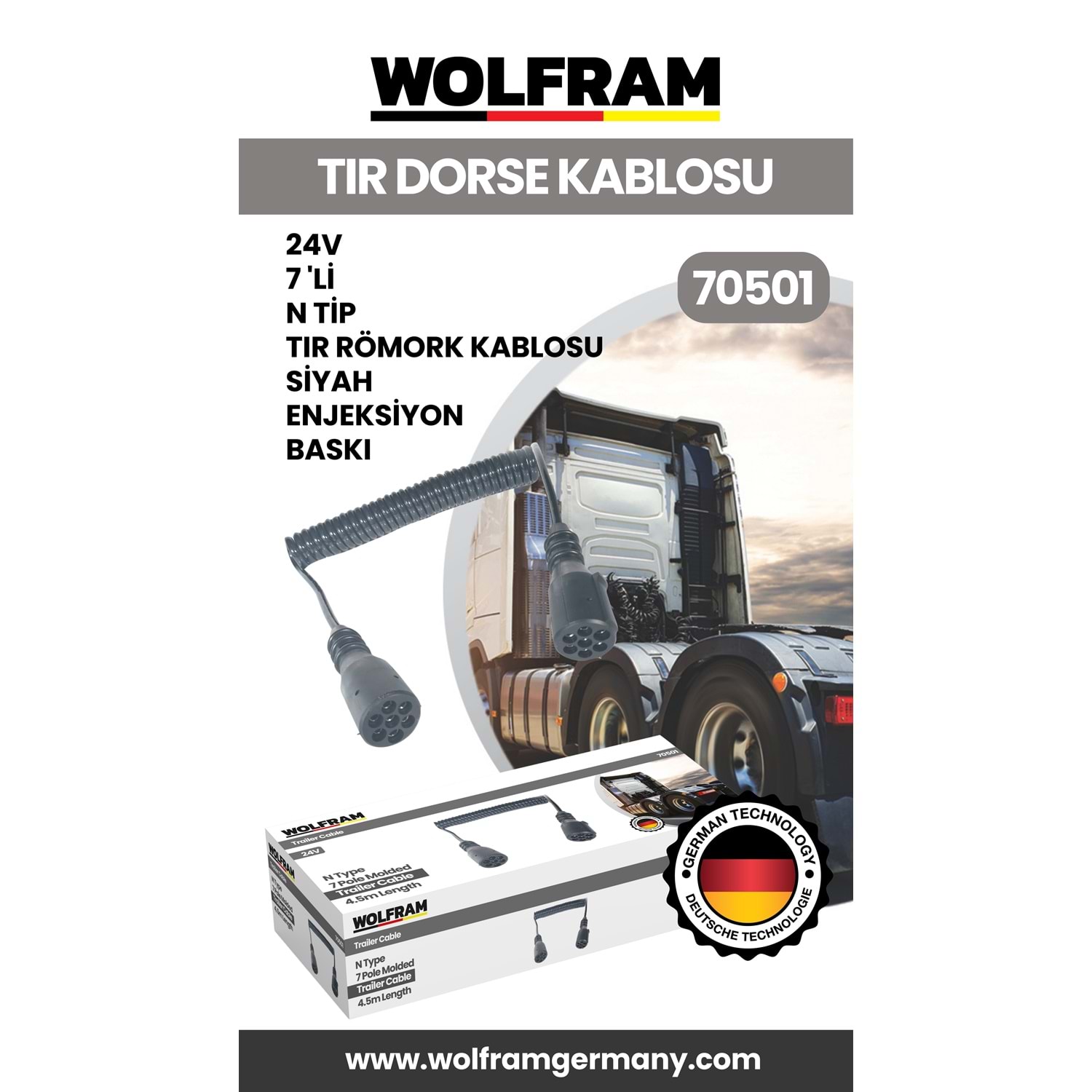 7 Lİ N TİP TIR DORSE KABLOSU SİYAH ENJEKSİYON BASKI 24V