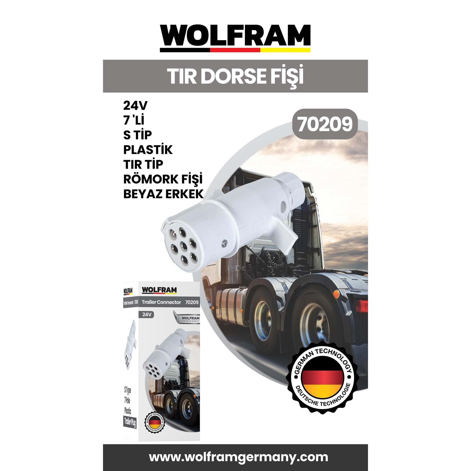 7 Lİ S TİP PLASTİK TIR DORSE FİŞİ BEYAZ ERKEK 24V