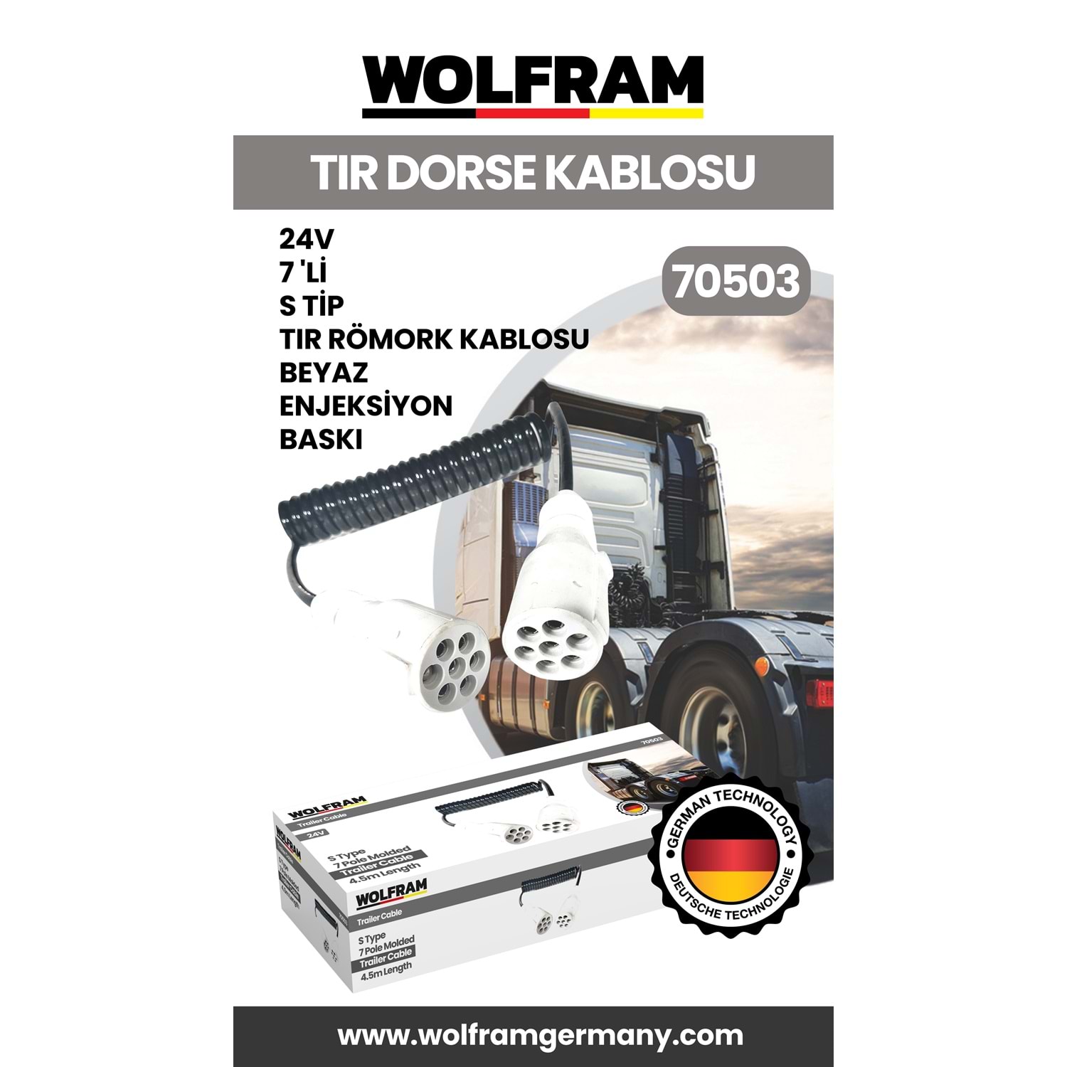 7 Lİ S TİP TIR DORSE KABLOSU BEYAZ ENJEKSİYON BASKI 24V
